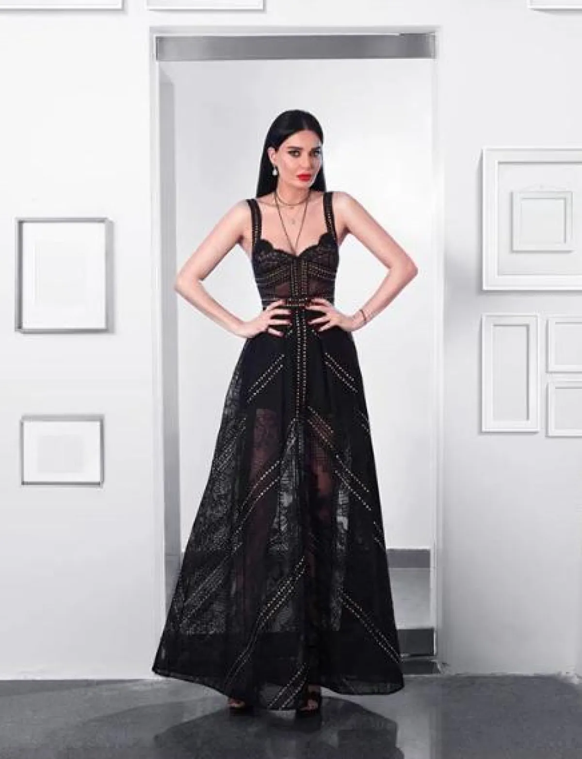وإن كنتِ من عشاق اللون الأسود، فبإمكانكِ أن تستوحي من اطلالة رحمة رياض التي اختارت فستان سهرة بتصميم مبتكر وناعم في الوقت ذاته، باللون الأسود، بقصة ضيقة ومنسدلة على الجسم، وأكمام منفوخة أضافت لمسات دراماتيكية على التصميم، وقد نسقت معه مجوهرات ماسية لافتة.