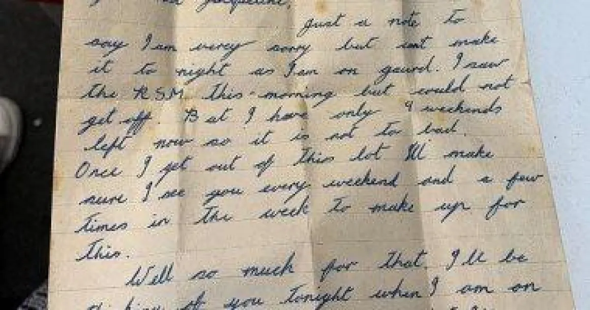 وكتب هذا العاشق إلى حبيبته يحترق من الأسف: «.. إنني آسف للغاية ولكن لا يمكنني الوفاء بالمجيء الليلة وعلى الرغم أنني كنت على أهبة الاستعداد، لم أستطع النزول.. لكن لم يتبق لي سوى تسع عطلات نهاية أسبوع، لذا فهو أمر ليس سيئًا للغاية»، علمًا أنه تم نشر الملاحظة المكتوبة بخط اليد.