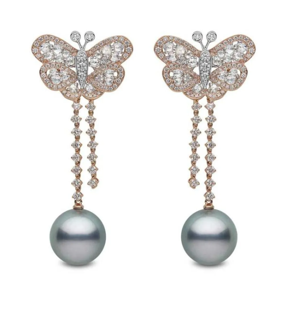 وبعيداً عن اللون الأبيض، ظهرت بعض أقراط اللؤلؤ باللون الرمادي، لتمنح العروس إطلالة مميزة ولافتة، مثل أقراط بوتشيلاتي Buccellati، ويوكو لندن Yoko London.
