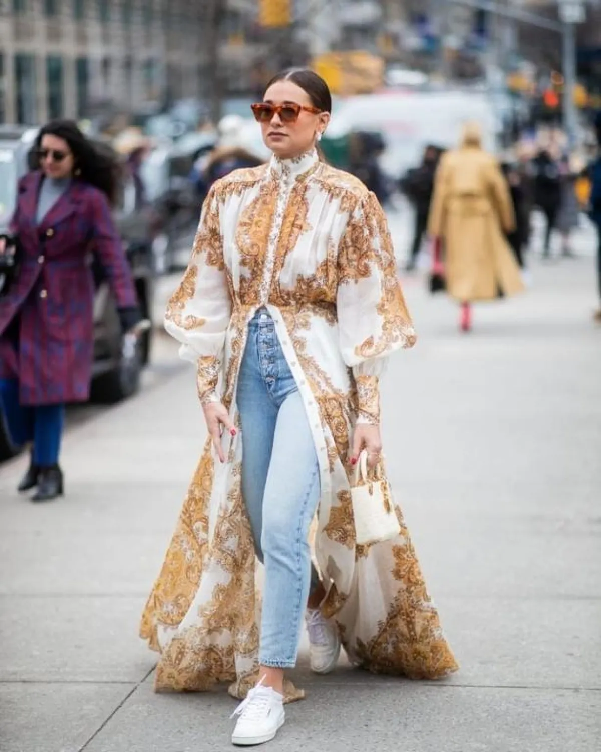 ظهرت موضة الفساتين مع جينز بشكل بارز هذا العام، بخاصة في موضة الشارع، وهي موضة كانت رائجة منذ عشر سنوات أو أكثر، ثم اختفت تمامًا وعادت هذا العام، ومن المنتظر أن تحقق مزيدًا من الرواج، لأنها تتماشى مع صيحة الملابس الفضفاضة التي تحتضها الموضة هذا العام.