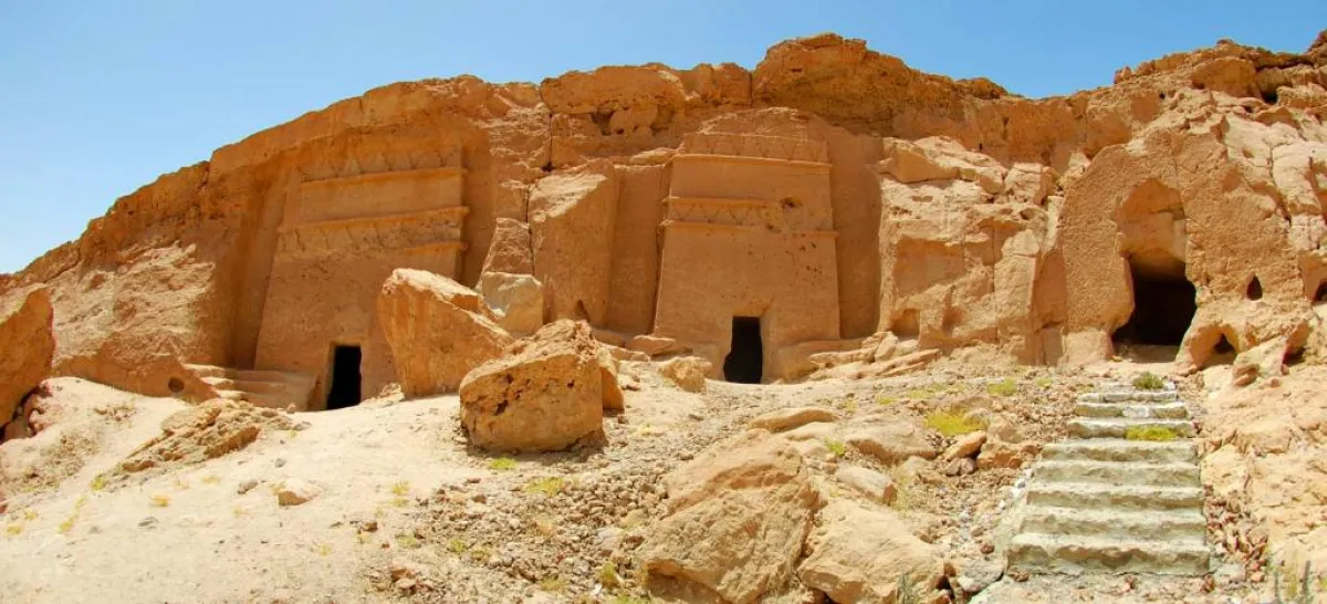 هي مدينة أثرية تضم بيوتًا ومعابد أثرية منحوتة في الصخر والجبال وتشبه آثار مدائن صالح، يرى بعض علماء الآثار أنها تعود إلى الألفية الثانية قبل الميلاد.