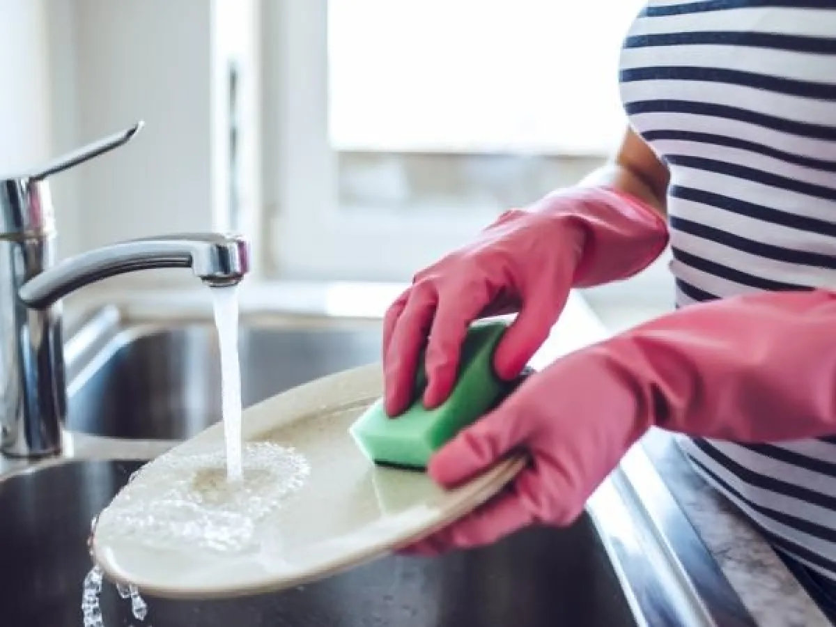 • يُصبُّ الماء الساخن على الأطباق المُتَّسخة، إذ هو يساعد في تذويب الدهون. ثمَّ، تُدعك هذه الأطباق بإسفنجة الجلي المُشبَّعة بسائل الجلي.