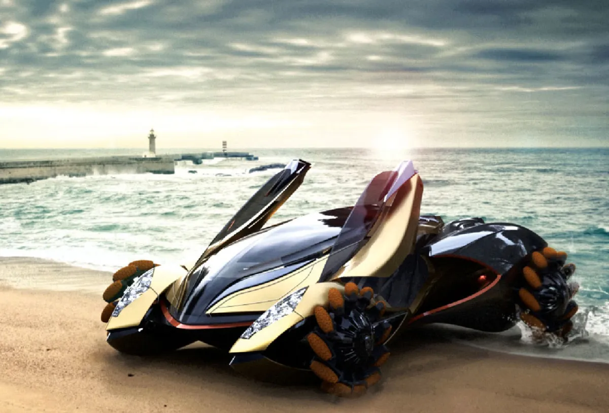 Amphi-X نموذج لسيَّارة خارقة، حيث يعمل جهازها بالطاقة الكهربائية، ويصل إلى سرعات تزيد عن 260 ميلًا في الساعة، أي ما يعادل 418 كم/ ساعة على الأرض، ومتوسّط سرعة يزيد عن 90 ميلاً في الساعة، أي ما يعادل 145 كم/ ساعة في الماء.