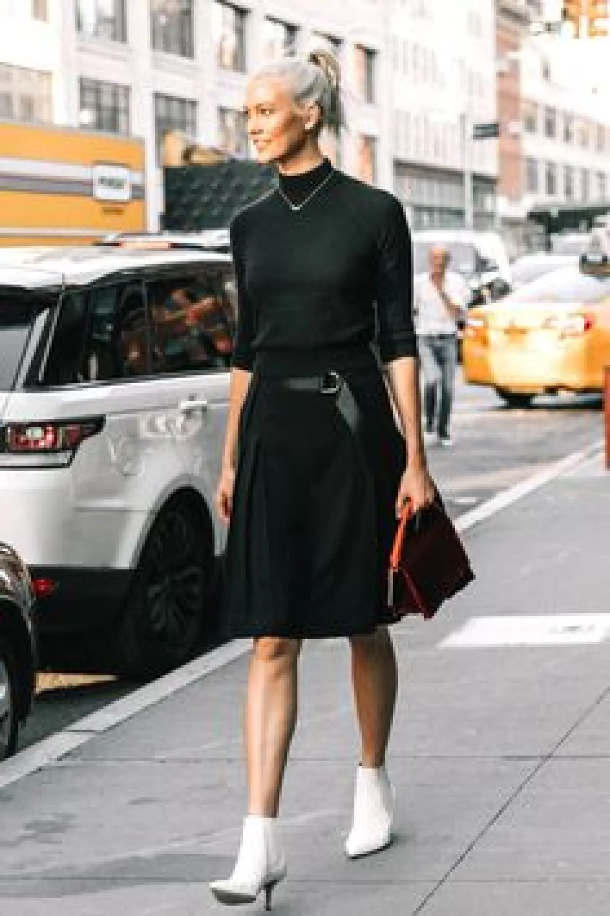 اطلالات المونوكروم هي الأنسب لاطلالة العمل، فنظراً لضيق الوقت لديك خلال انتقائك لملابس العمل، أسهل طريقة هي اختيار اللون الموحد من الرأس الى أخمص القدمين . فيمكنك تنسيق قميص باللون الأسود مع بنطلون رسمي ، وحذاء بكعب مربّع ، أو تنورة ميدي مع توب أسود ، وبوت أبيض .