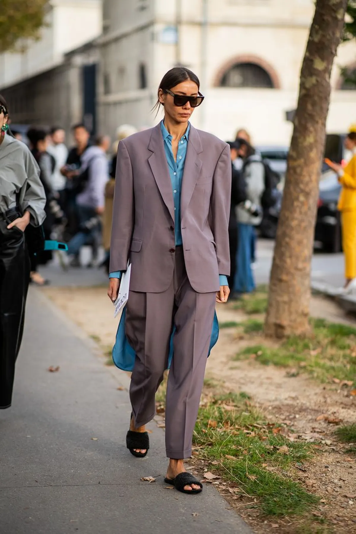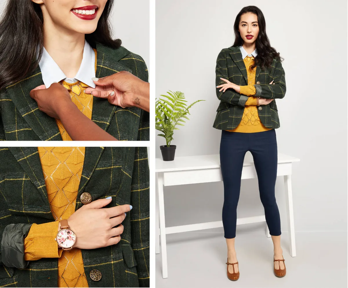 اختاري البدلة لاطلالة عمل رسمية وأنيقة، فيمكنك تنسيق البدلة الملونة الفضفاضة، وهكذا تكونين على الموضة أو يمكنك تنسيق اطلالة البدلة الكاروهات مع حذاء مول بكعب عالٍ وشنطة يد صغيرة .