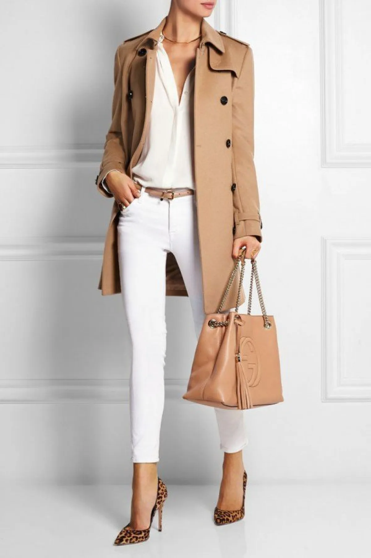 كسر اطلالة المونوكروم بحذاء من لون مختلف، أو جاكيت ملوّن، خيار مناسب لاطلالة عملك أيضاً، فيمكنك اختيار اطلالة الجينز باللون الأبيض مع تي شيرت أبيض وجاكيت أو معطف صيفي من اللون البنّي أو البيج . أمّا بالنسبة للحذاء، فيمكنك الاختيار بين حذاء مفتوح بكعب عالٍ أو حذاء المول بـ نقشة جلد الحيوانات لكسر اللون الموحّد لاطلالتك .