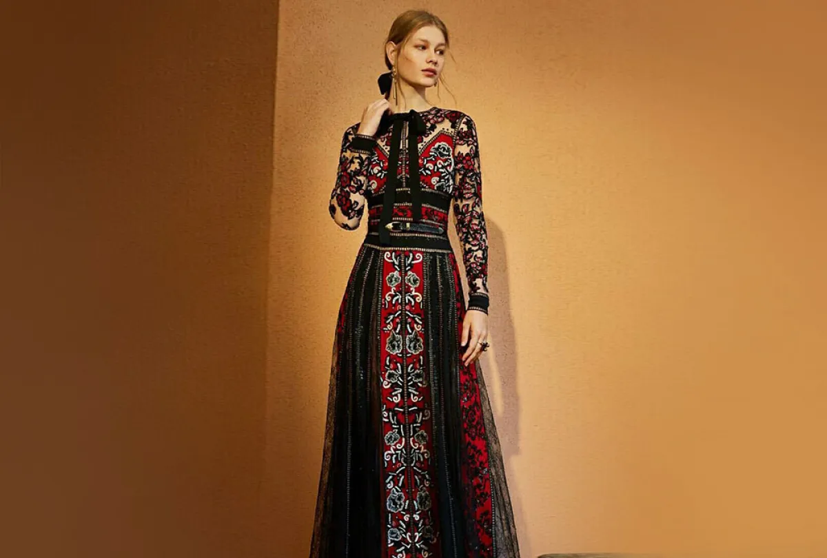 للمسة راقية تألقي بها بحفلات عيد الفطر سواء بالمساء أو النهار، ستناسبكِ فساتين إيلي صعب Elie Saab ، لاطلالة بسيطة ومميزة بالوقت نفسه، كالفستان الأحمر الفاقع، يجعل شكلكِ رشيقًا مع الكشكشكة الطبقية التي تزيدكِ طولًا، وحزام الخصر الذي يجعل جسدكِ لا يبدو ككتلة واحدة.