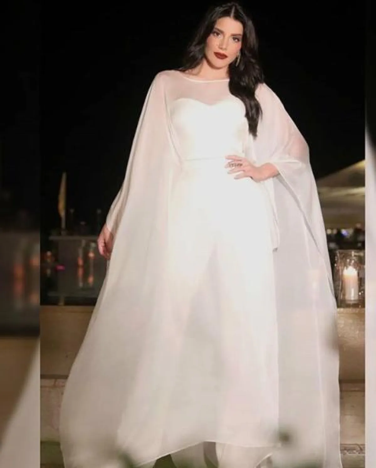 الممثلة اللبنانية الصاعدة سينتيا صموئيل، اختارت اطلالة مميزة باللون الأبيض لحفل سحور، حملت توقيع “أنطوان القارح” Antoine Kareh وكانت عبارة عن جمبسوت باللون الأبيض، من فوقه ما يشبه الجلابية من قماش الشيفون باللون الأبيض أيضًا، وقد ناسبها كثيرًا اللون والتصميم.