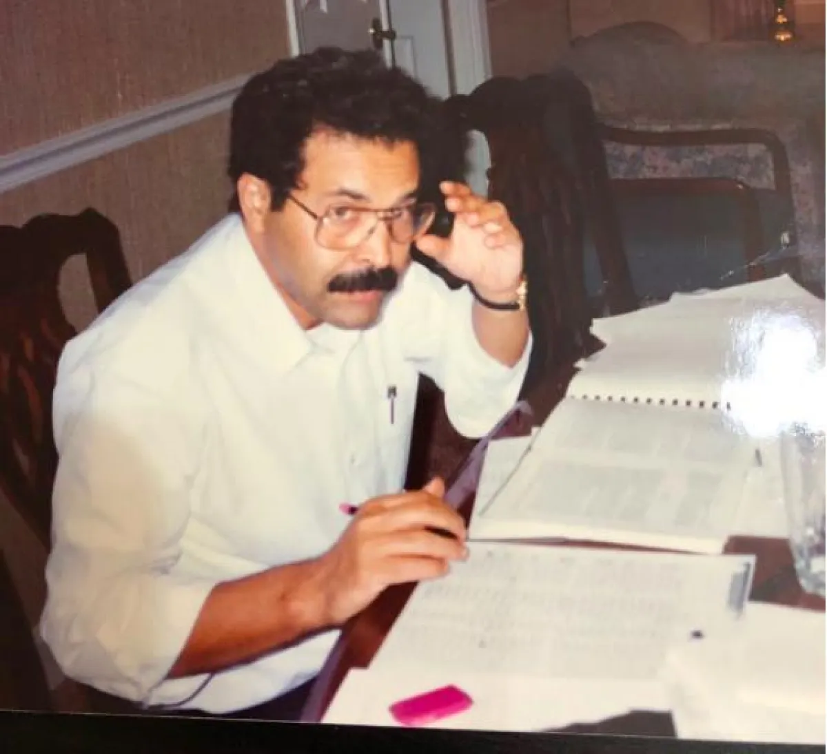 تقول أم جهاد :"توفي زوجي وعمره 57 عاماً بعد أن عاش حياةً مملوءة بالأحداث والتجارب. غادر السعودية مبتعثاً إلى أميركا ليكمل الماجستير والدكتوراه، وعاد منها ليعمل محاضراً في كلية الملك خالد العسكرية. في آخر يوم من حياته، كان مرهقاً جداً بعد عودتنا من مراجعة طبية، أجراها في أحد المستشفيات، وفور وصولنا إلى البيت، أجريت محادثة هاتفية، واعتذرت عن موعدً، لكنه تدخَّل وأكد أنه بخير، ثم ذهب إلى غرفته للنوم، بينما جلست مع الأولاد في خيمة صغيرة ملحقة بالبيت مع عدد من الضيوف، وكانت ابنتي "تفاني" خلال ذلك تطمئن عليه في غرفة نومه، وعندما غادر الضيوف، دخلت إلى غرفته، فوجدته ممدداً على الأرض، فرفعتُه إلى السرير، واتصلنا بالإسعاف، لكنه فارق الحياة قبل وصول المسعفين".