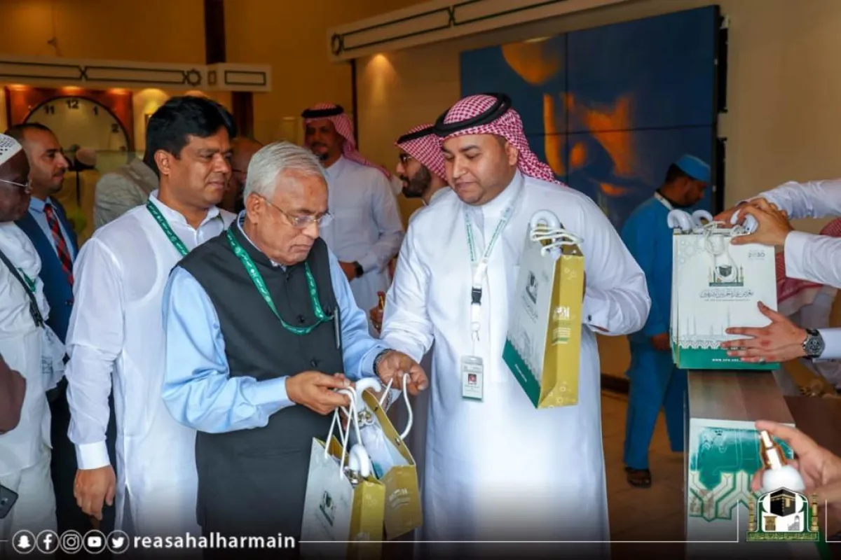 وكان في استقبالهم سعادة مدير عام إدارة المعارض المهندس ماهر الزهراني وسعادة مساعد مدير مجمع الملك عبد العزيز لصناعة الكسوة الأستاذ هشام علاء الدين وسعادة مساعد مدير عام العلاقات والإعلام والاتصال لشؤون الإعلام الأستاذ هاني حيدر وعدد من منسوبي الرئاسة.