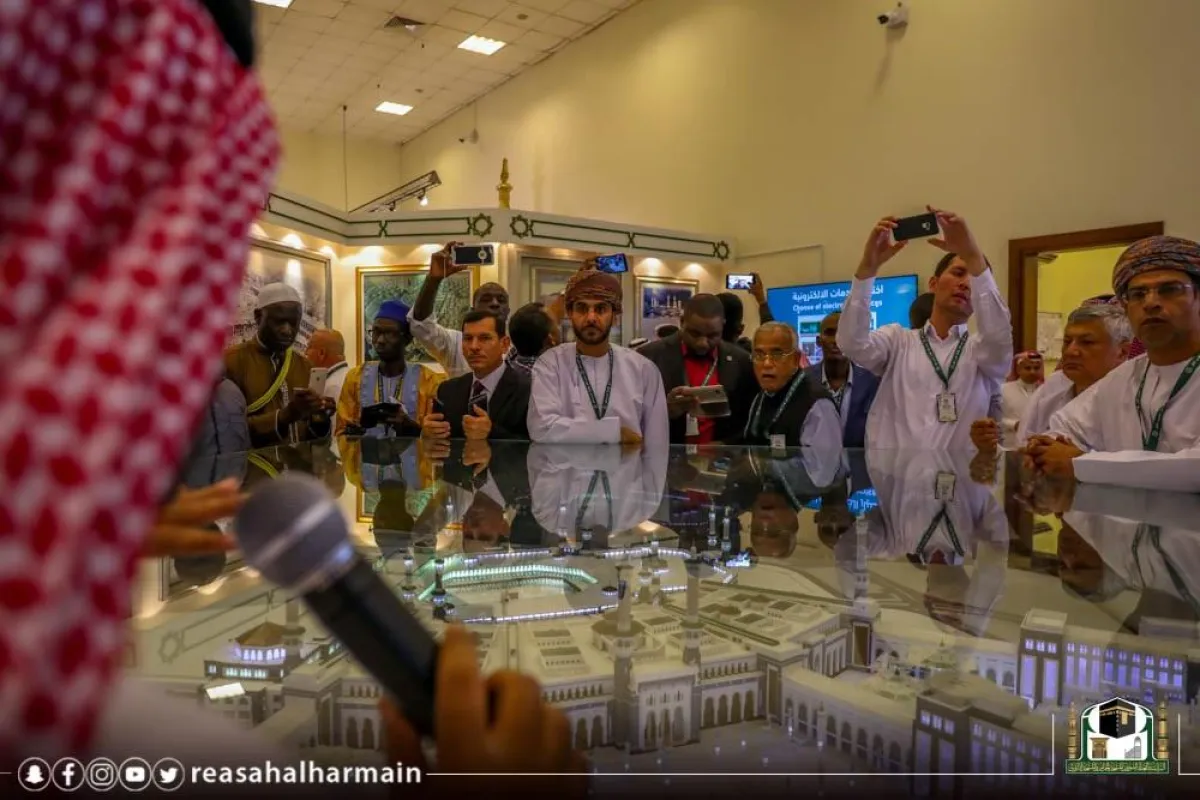بعد ذلك قام الوفد الإعلامي بزيارة مقر معرض عمارة الحرمين الشريفين، حيث كان في استقبالهم سعادة مدير عام إدارة المعارض المهندس ماهر الزهراني، والذي اصطحبهم في جولة لمشاهدة مقتنيات المعرض الثمينة والتي تتمثل في الحقبة الإسلامية الأولى وحتى العهد السعودي الزاهر، واستمع الوفد خلال الجولة لشرح عن المقتنيات التي يحتويها المعرض، مبدين إعجابهم بما شاهدوا من مقتنيات.