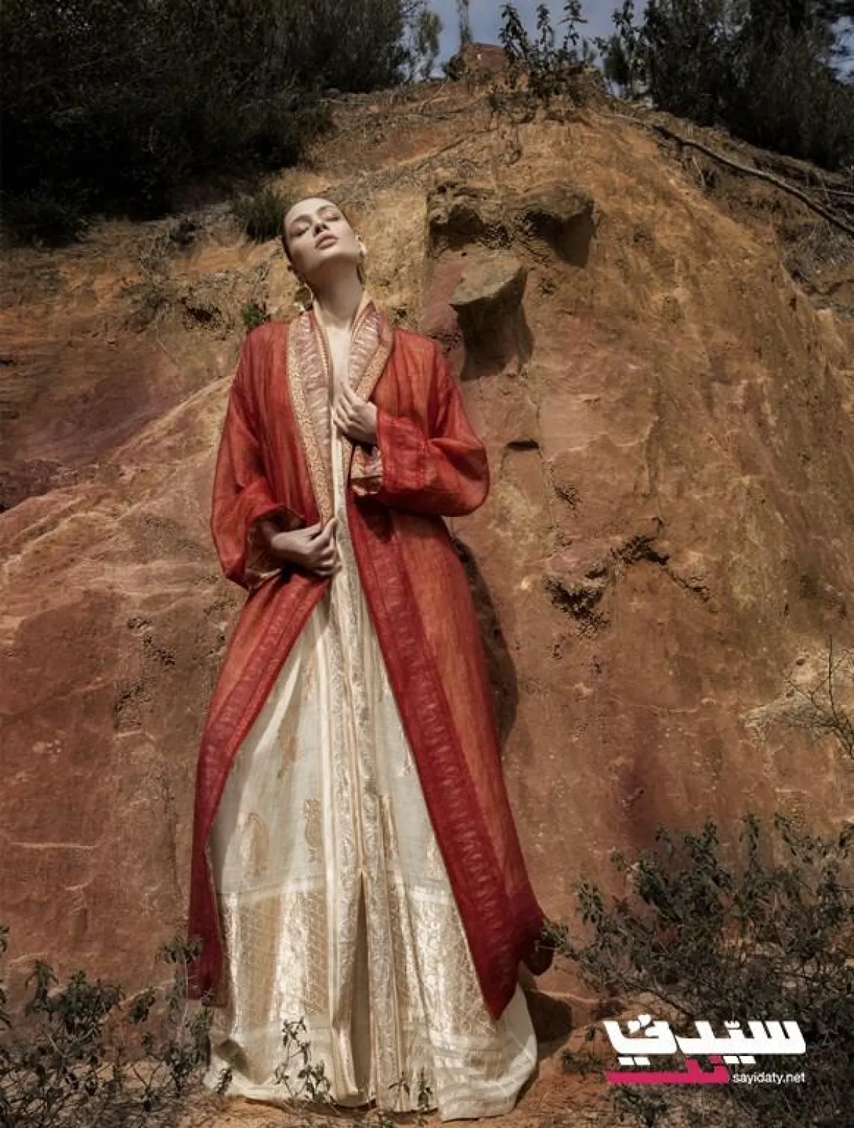 عباءة باللون القرميدي. السعر 1100$كلاهما من Assila