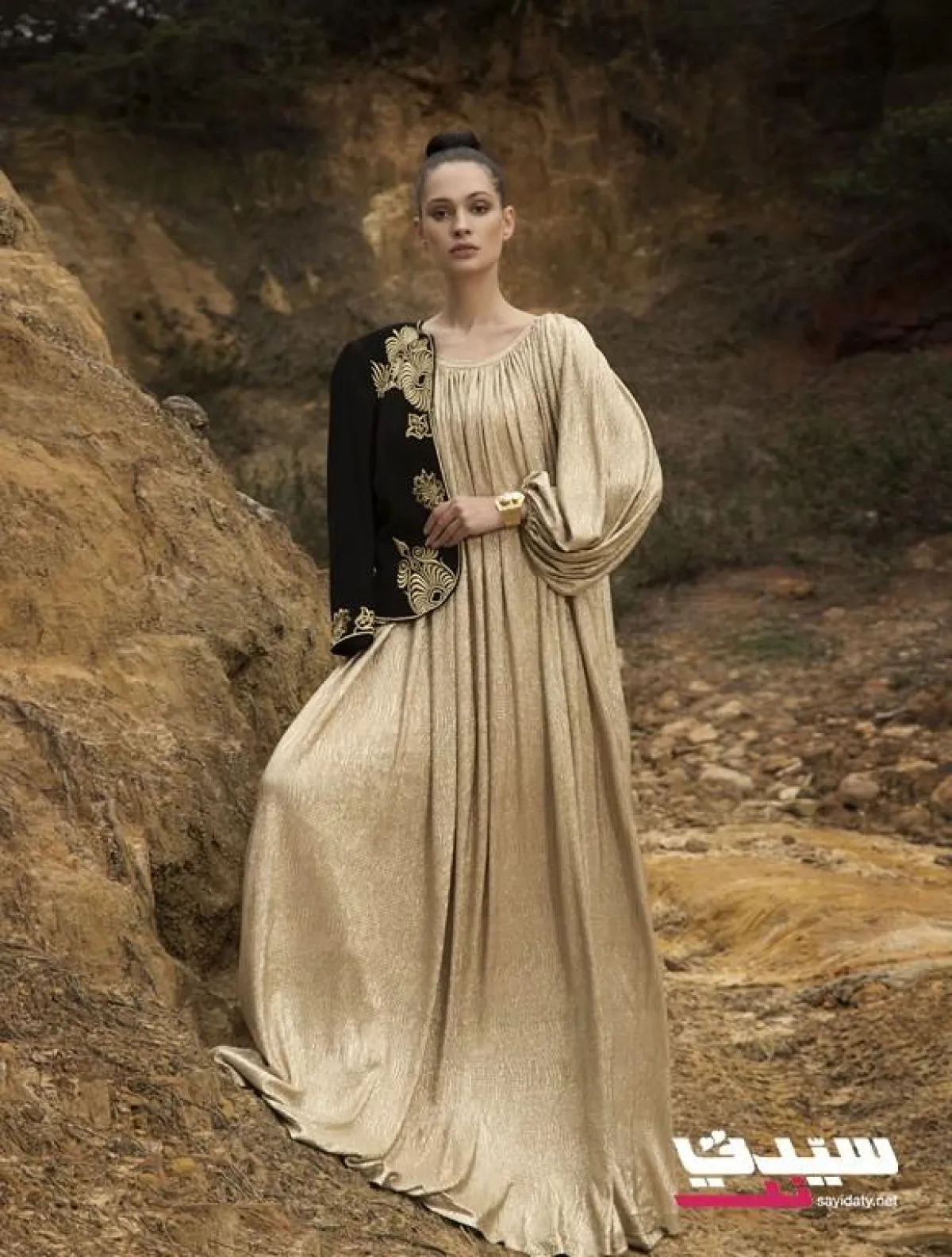 جلابية باللون البيج-الذهبي. السعر 955$