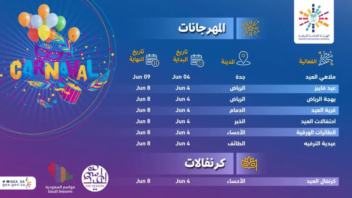 ضمن موسم العيد: "هيئة الترفيه" تعايد مواطني المملكة والمقيمين فيها وزوارها بأكثر من 80 فعالية في مختلف المناطق