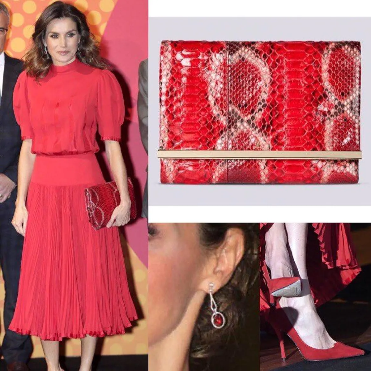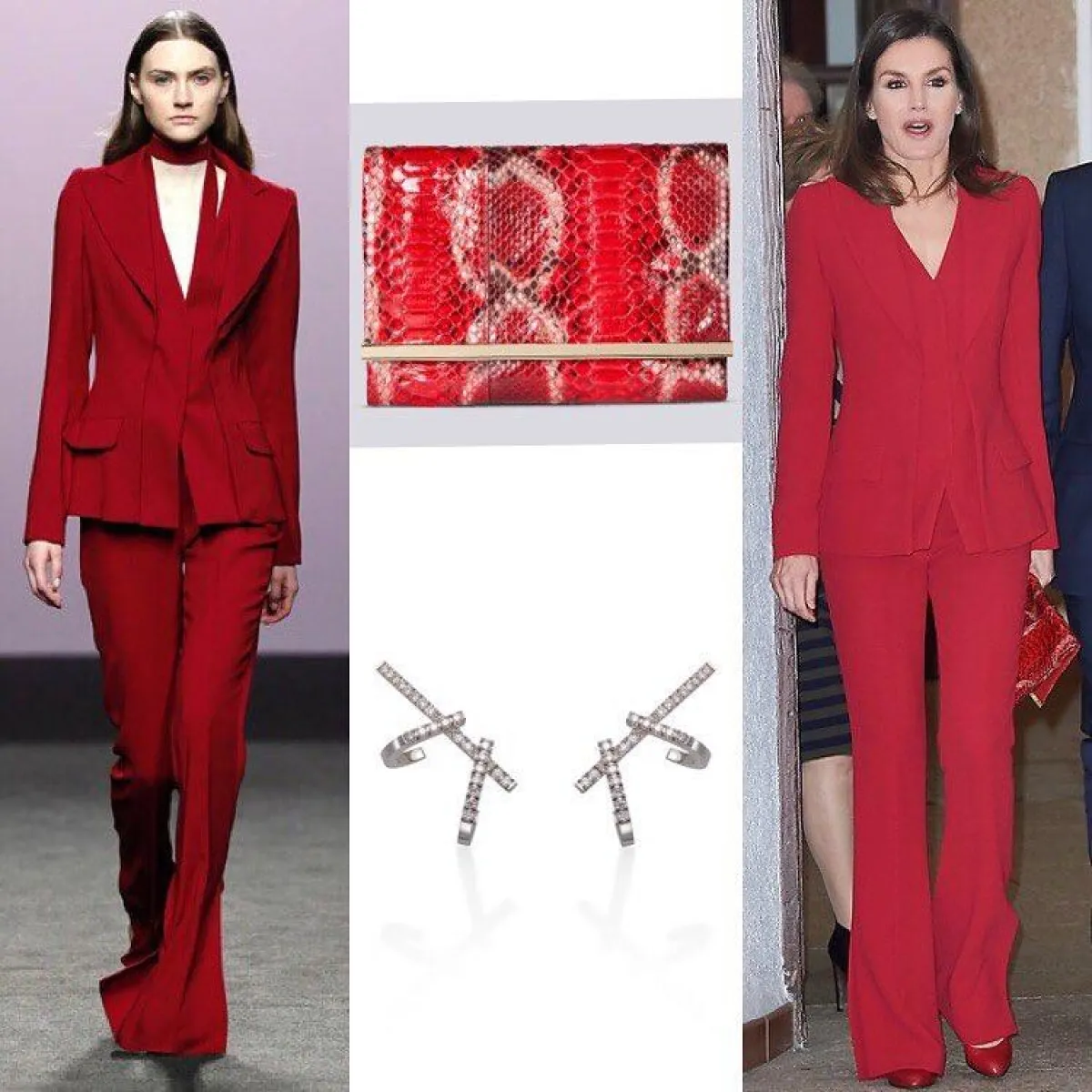 من يتابع أرشيف الملكة ليتيزيا يكتشف بسهولة أن اللون الأحمر هو لونها المفضل، لذلك تعتمده بستايل المونوكروم، أي اللون الموحد من الرأس إلى القدم. كذلك تمزجه بأسلوب عصري، فسبق أن اعتمدت تنورة حمراء مع توب وردي.