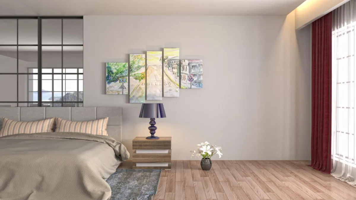 عند إكساء غرف نوم الزوجين بقشرة خشب السنديان أو الموغانوم، يجب أن يحافظ الطلاء على القشرة ليعكس لونها وشكلها