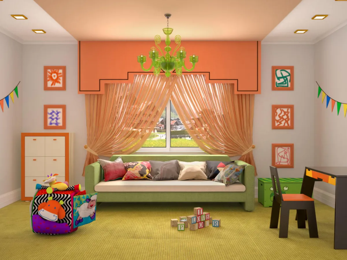 في غرف نوم الأطفال، يحلو يمكن دمج لونين مختلفين، كالبرتقالي والأخضر