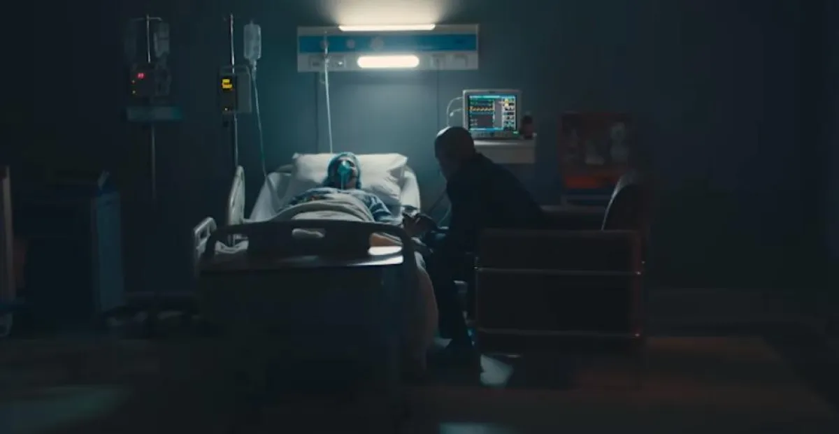 صافية جمعها بزلزال حوار أخير قبل أن تدخل إلى غرفة العمليات لوضع طفلهما، وبالفعل وضعت صافية ولدًا، ثم نُقلت إلى العناية لإجهاد قلبها، وبينما كانت ترقد فى العناية وإلى جوارها زلزال، يتوسل إليها بألّا تتركه وتموت، إلى أن تنبهه صفارة أحد الأجهزة إلى مفارقتها الحياة، فينزع عنها جهاز التنفس الاصطناعي وينهار باكيًا.