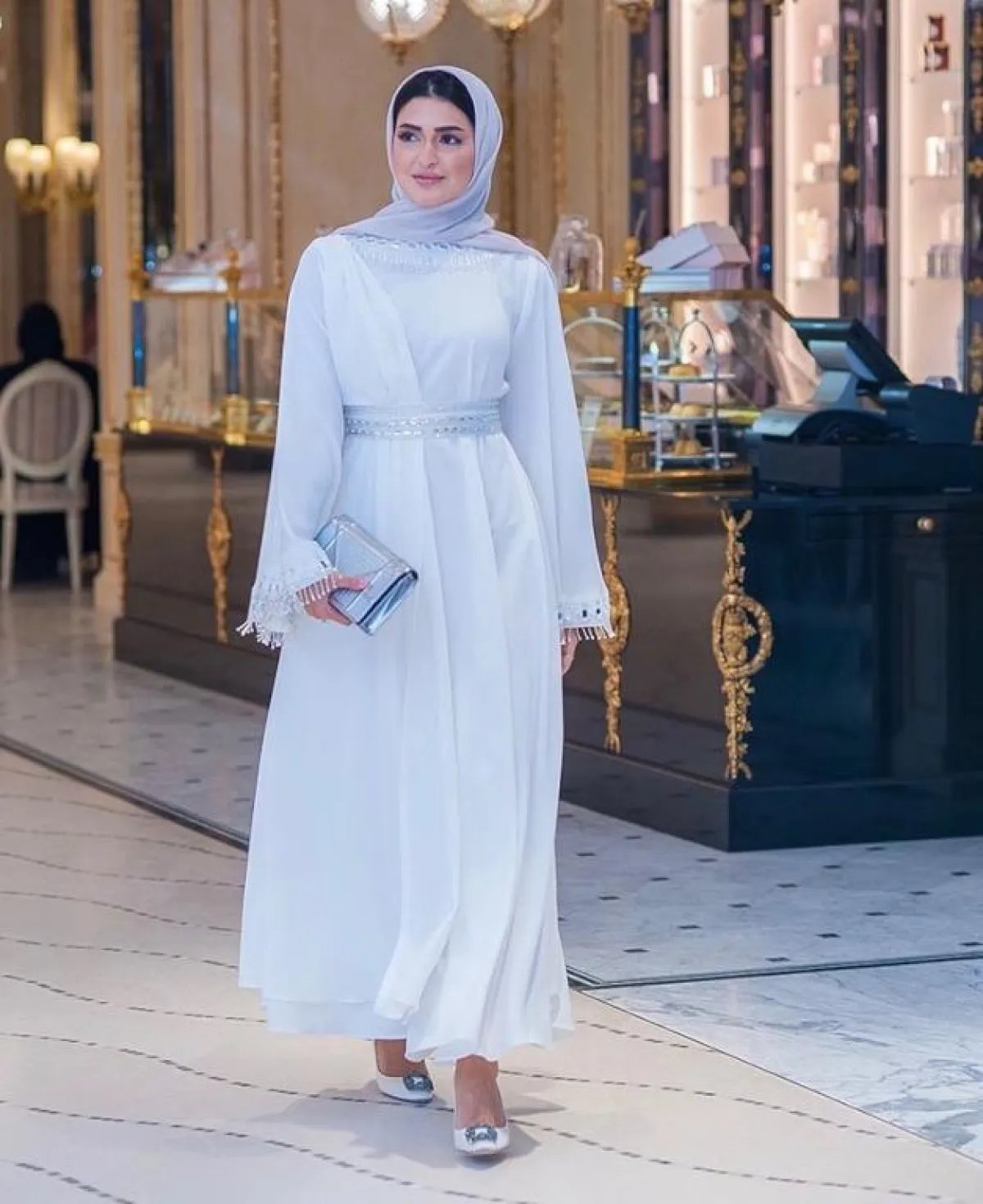 عباية بيضاء أنيقة مع تطريزات الدانتيل