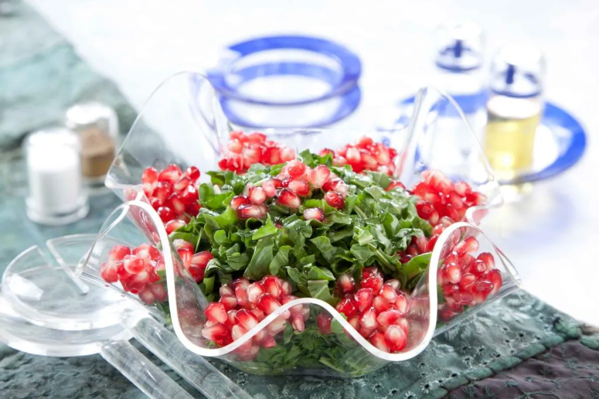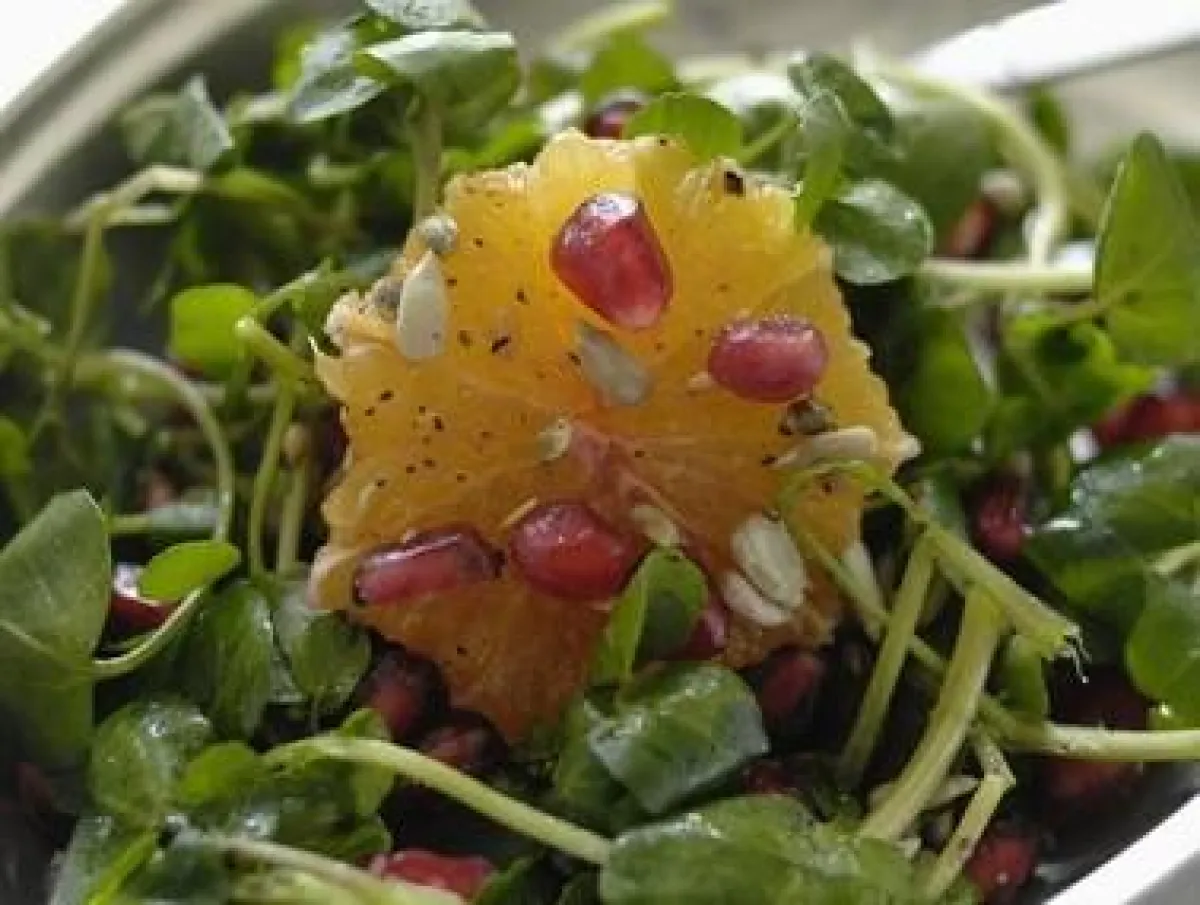 2-ضعي، في طبق التقديم، الجرجير والرمّان، ووزعي الصلصة وقدّمي هذه السلطة مباشرةً.