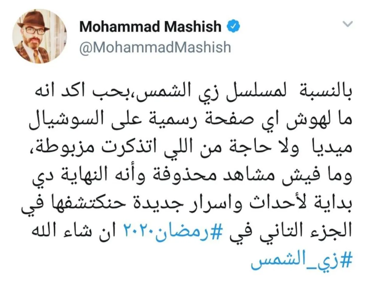 السعدني تدخّل لفض الاشتباك بين صفحة على موقع الفيس بوك، ادعت أنها الرسمية، وبررت ارتباك الحلقة الأخيرة بتدخل الجهة المنتجة بحذف مشاهد عدة، وبين تصريحات منتج المسلسل محمد مشيش، حول احتمال تقديم جزء جديد، وقال: بالنسبة لمسلسل "زي الشمس"، بحب أكد ملهوش أيّ صفحة رسمية على السوشيال ميديا.