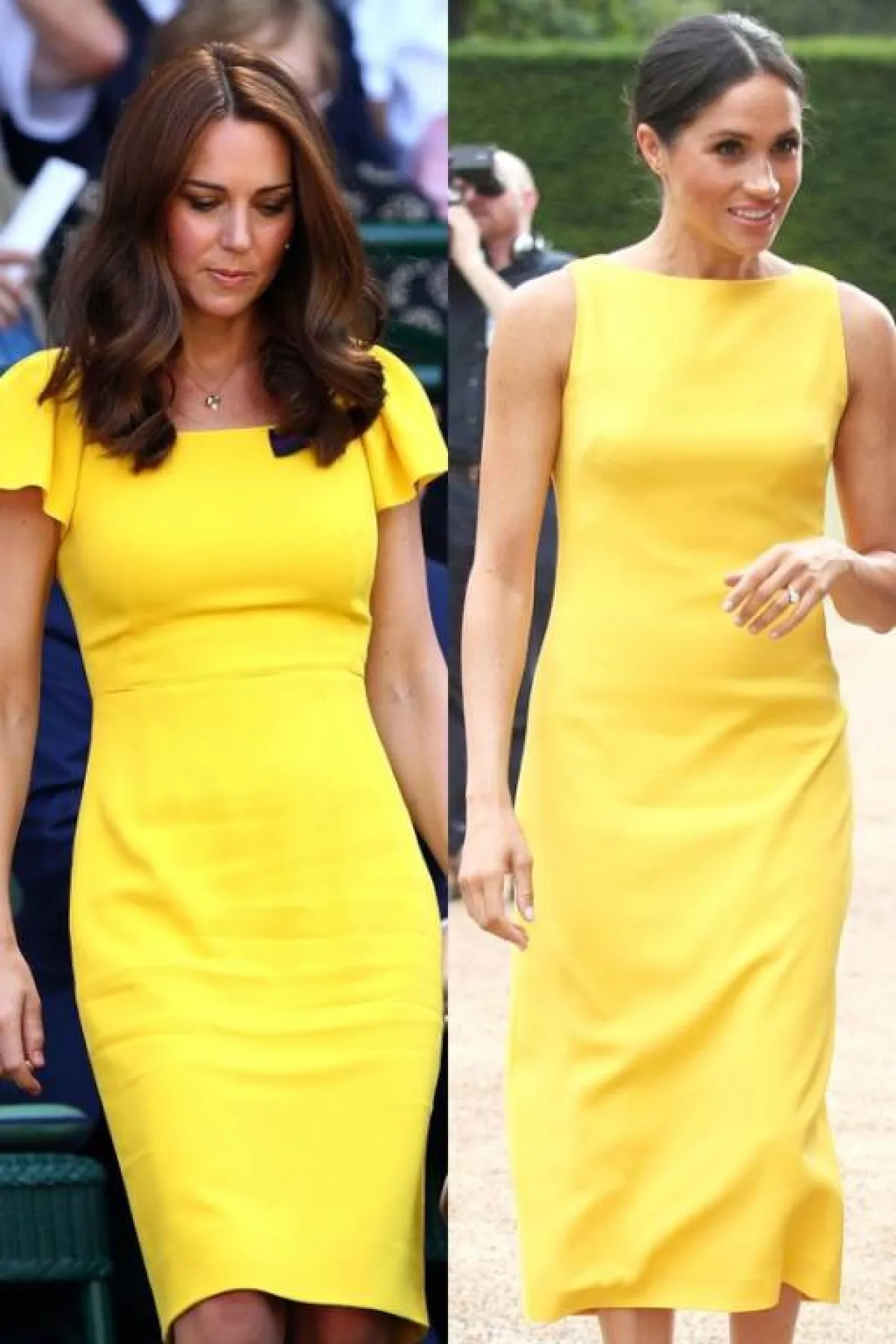 شوهدت الدوقة ميغان ماركل وكيت ميدلتون باطلالتين متشابهتين من الفساتين الميدي من اللون الأصفر، والتي يمكنكِ اعتمادها خلال مناسباتِك .