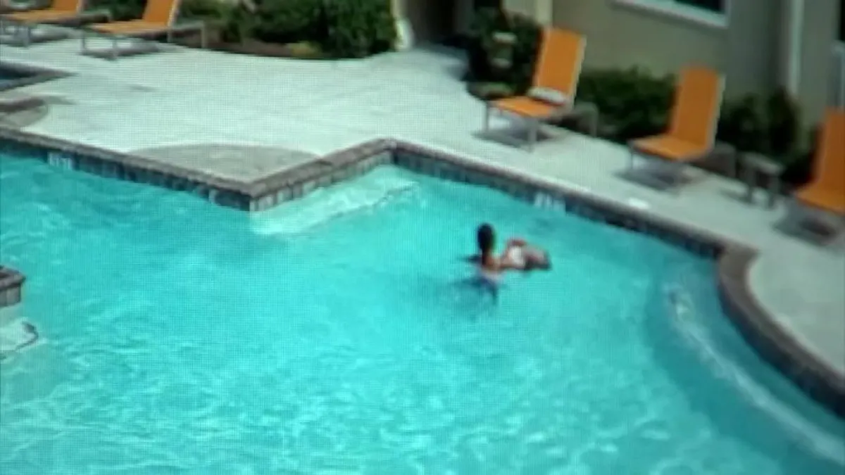 وتظهر لقطات الفيديو الطفلة كالي داليس (3 سنوات)، ترتدي طوق نجاة، وتقفز إلى الماء في المسبح لكنها تنقلب رأسا على عقب. وتحاول الطفلة البقاء على سطح الماء، لكنها تغرق بعد فترة وجيزة من الوقت ولا تلحظ ذلك سوى شقيقتها جايلا التي كانت على الجانب الآخر من المسبح.
