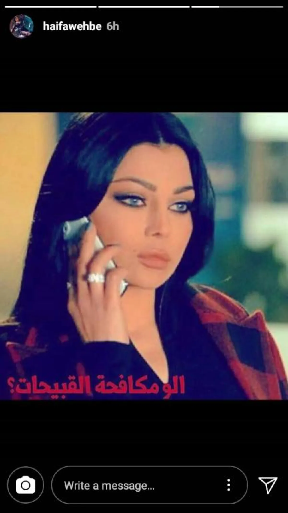 وكانت شيرين عبد الوهاب في مقدمة الفنانات اللواتي تمنين الشفاء لـ هيفاء وهبي وتلتها الفنانة إليسا، وذلك بعد نشرها تغريدة تعايد فيها الجمهور بمناسبة حلول عيد الفطر المبارك، وتعتذر فيها عن إبتعادها فنياً وعدم الظهور في أي عمل فني أو مقابلة خلال شهر رمضان، بسبب مرضها ووجودها في المستشفى طيلة الشهر المبارك.