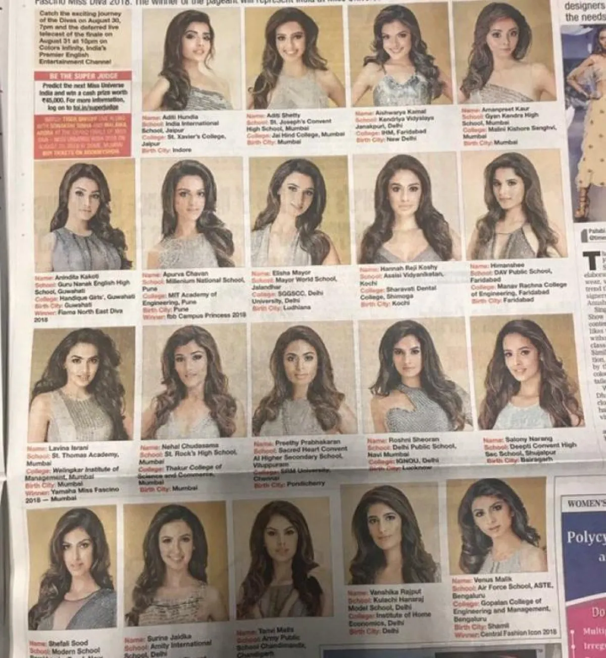 وكانت صحيفة «تايمز أوف إنديا» الهندية، الناطقة باللغة الإنجليزية، قد أثارت انتقادات واسعة وكبيرة في البلاد؛ بعد قيامها بنشر صورة تجمع المرشحات الثلاثين، اللاتي تمكّنَّ من الوصول إلى الأدوار الإقصائية النهائية من المسابقة، وكانت الصحيفة قد ضمّنت مع هذه الصور عنوانًا عريضًا كان «من ستحصل على لقب ملكة جمال الهند هذا العام؟»، وربما لم تكن الصحيفة الهندية تدري بأنه سيُثار جدل بسبب «لون البشرة»، وذلك كون المتسابقات الثلاثين كنّ من ذوات البشرة البيضاء جميعهن.