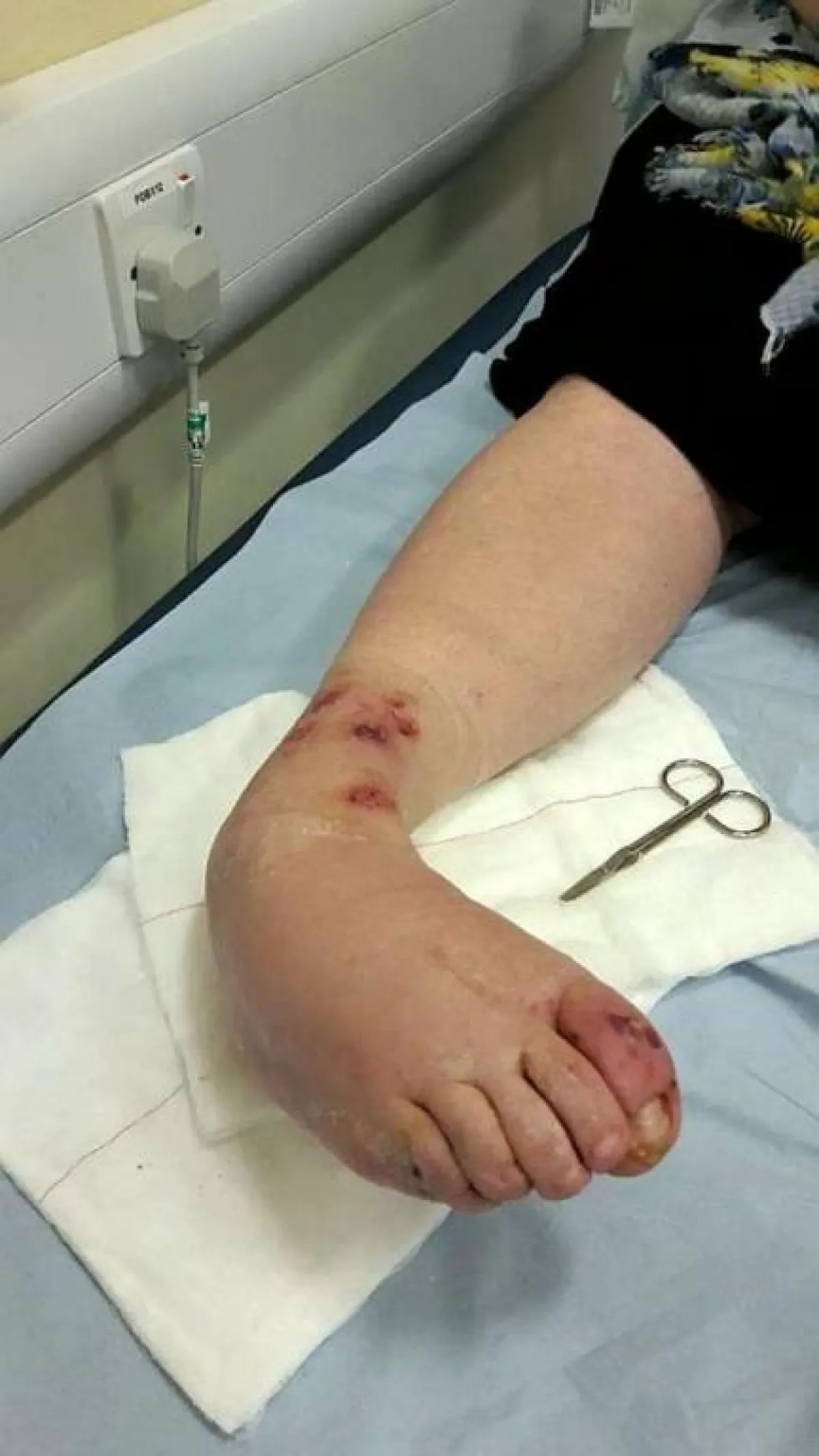 وبحسب موقع «ميرور» تسببت الإصابات التي يبدو أنها تافهة في تضخم قدم «جيل هدينجتون» اليمنى إلى ضعف حجمها، وتطوير قرحة مؤلمة مع تجعيد أصابع قدميها، حيث كان الألم في قدمها شديدًا لدرجة أنها توسلت للأطباء لبتر ساقها من شدة الألم بعد عامين من المعاناة، حتى أصبحت الآن خالية من الألم بعد إزالة ساقها اليمنى أسفل الركبة.