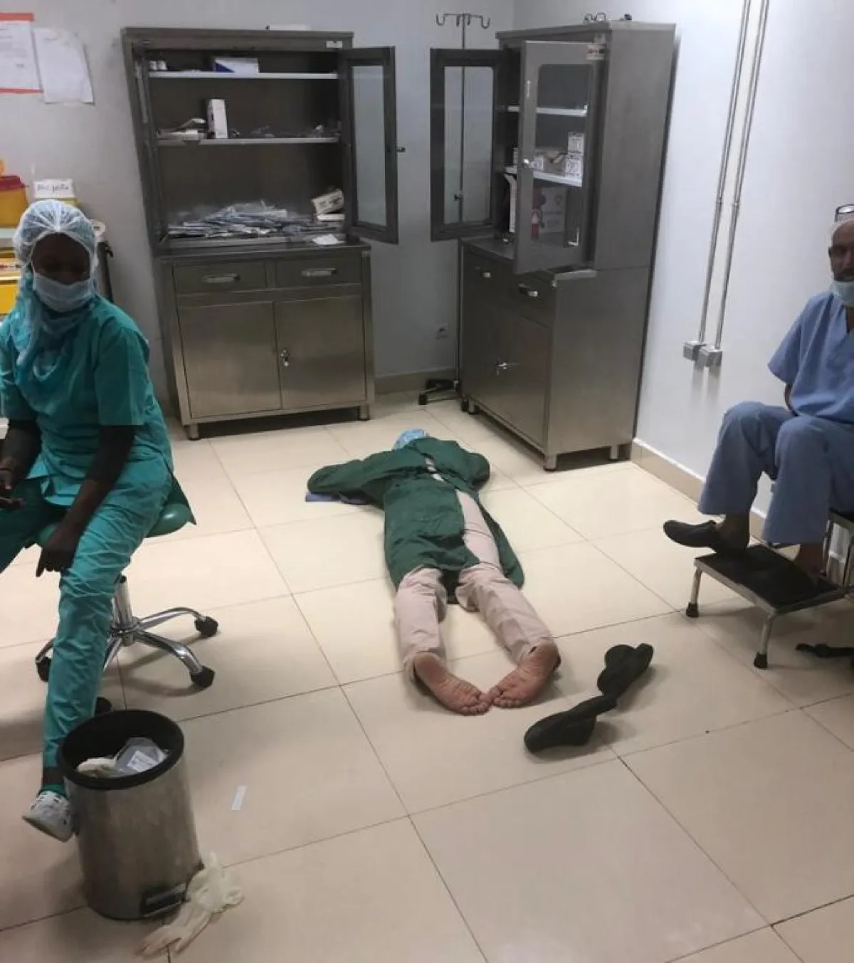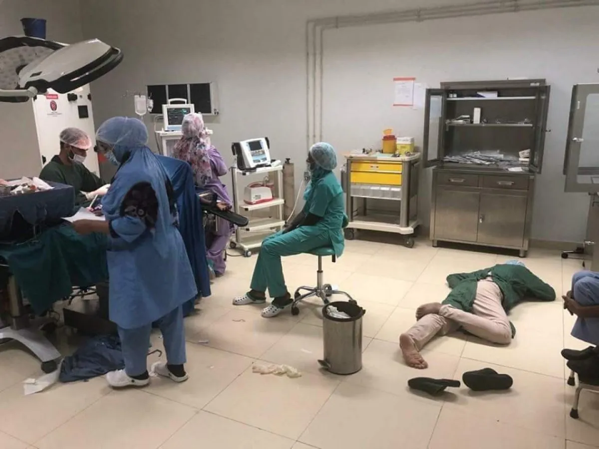 هي صورة غير معتادة لطبيب جرّاح انهكه تعب اجراء عمليّة جراجية دقيقة لطفلة في الثّامنة من عمرها كانت تعاني من تشوّه خلقي في الكبد وتواصلت العمليّة 6 ساعات بأكملها فاستلقى بعد اتمامها بنجاح ارضا في غرفة العمليات طلبا لقليل من الراحة ليواصل بعد اقل من ساعة اجراء عملية اخرى لا تقل تعقيدا عن الاولى.