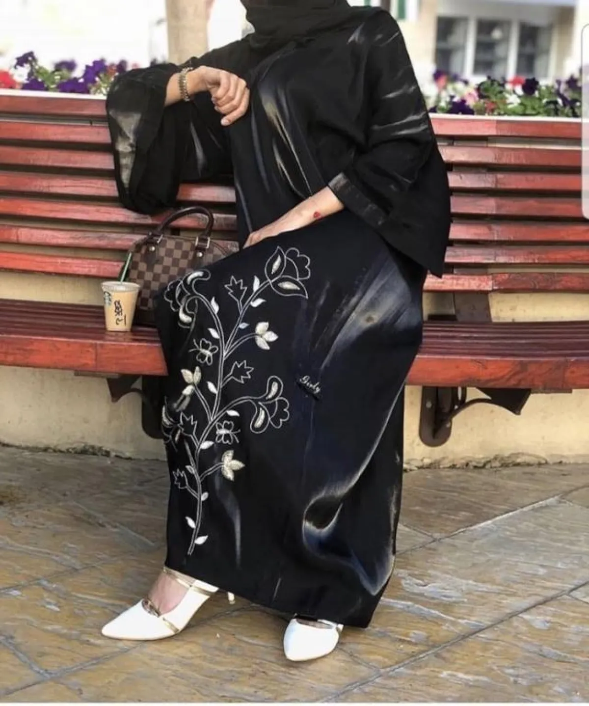 في الأيام المهمة بالعمل، بإمكانك التأنق بعبايات بتطريزات الخيوط النحاسية البسيطة، كهذه العباية من Ns Abaya، نسقي معها شنطة متوسطة الحجم فاتحة اللون كدرجات الأوف وايت الدارجة هذا الموسم، مع كعب أرضي صيفي، وحجاب باللون الأوف وايت يتناغم مع تطريزات العباية.