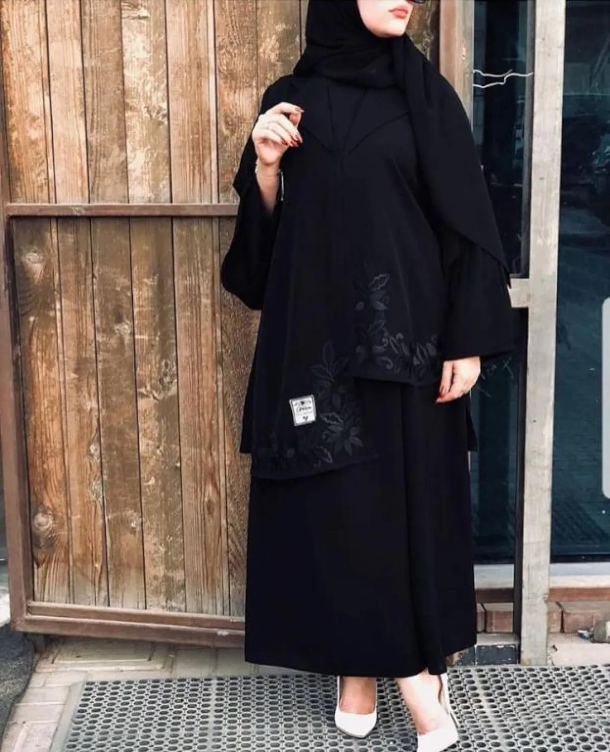 أنسب ما يمنحك اللوك الجاد والرسمي هو اختيار العبايات السوداء المزركشة بالنقوشات من نفس اللون على العبايه نفسها، من دون تطريزات كثيرة، كهذا الموديل من، نسقيها مع صندل أبيض أو بألوان النود، واعتمدي هذه المرة على الحجاب من نفس لون العباية.