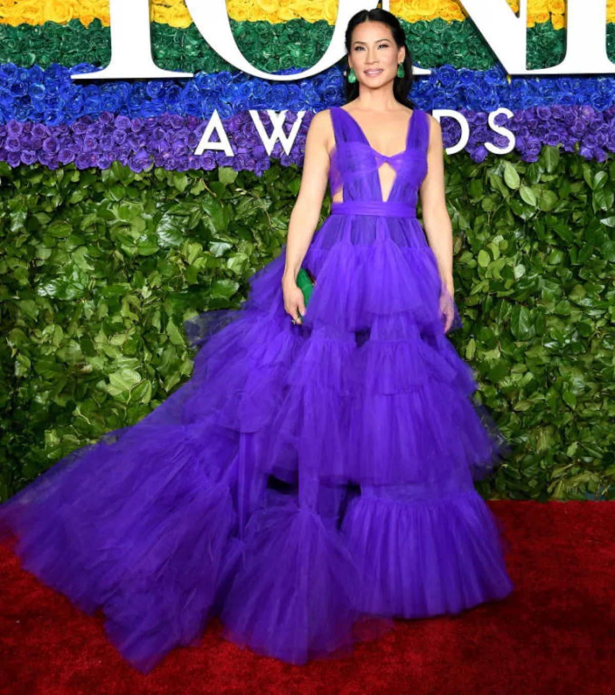 أحد أجمل اطلالات الحفل مساء أمس كانت اطلالة “لوسي لو” Lucy Liu في فستان من “كريستيان سيريانو” Christian Siriano باللون البنفسجي الغني، تصميمه أنثوي مصنوع من طبقات من الكشكش، وقد أكملت اللوك بشنطة يد، وأقراط لافتة باللون الأخضر.