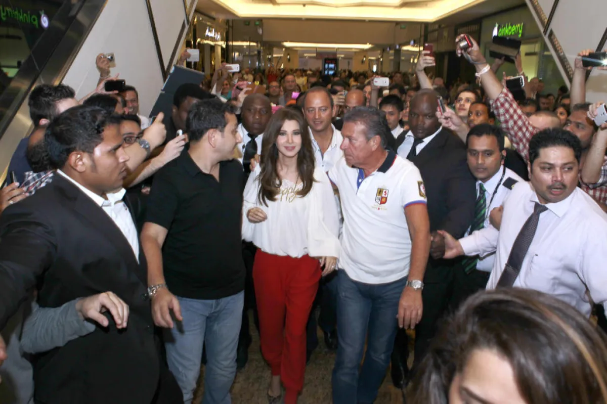 التقت الفنانة نانسي عجرم جمهورها أمس خلال وجودها بالـ World Of Fashion في مول الإمارات بدبي حيث امتلأ المول بحضور جماهيري غفير، وصعدت عجرم على منصة المسرح، الذي أعد خصيصاً لاستقبالها في منطقة "الجاليري" في مول الإمارات، ومن المنصة نفسها أجابت على سؤال كيفية حفاظها على وزنها وأناقتها حيث قالت: إنني دائماً أمارس الرياضة وبشكل منتظم، بالإضافة إلى إنني سعيدة جداً في حياتي ومع زوجي وبناتي ويبدو أن نانسي كانت تريد توجيه رسالة إلى شخص ما بهذه الإجابة، خاصة وأنه في الفترة الماضية انتشرت شائعات عن طلاقها من زوجها، وبعد الانتهاء من لقاء نانسي بجمهورها، والذي استمر إلى ما يقارب النصف ساعة اتجهت نانسي إلى فندق الشيراتون للقاء وسائل الإعلام وخلال توجهها إلى هناك التف من حولها الجمهور، وتسابقوا للوصول إليها ما أدى إلى ازدحام في المكان فتدخل جيجي لامارا، مدير أعمالها، والمنظمون لمساعدتها لكي تتمكن من الخروج بعد الازدحام الشديد، الذي كان من حولها، وعلى الرغم من ذلك كان يلاحقها الجمهور إلى أن ركبت سيارتها وغادرت.