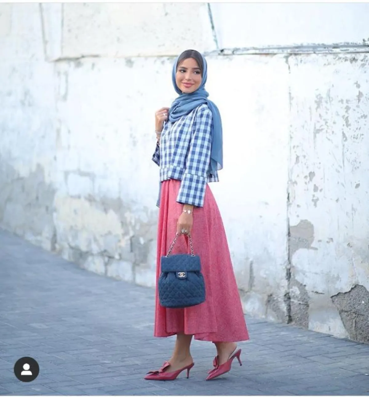 لصاحبة الشخصية الحيوية والتي تعشق الحياة ، اعتمدي أحد هذه الألوان بتنورتك العصرية، كهذه الإطلالة من خولة المراغي، نسقتها بطريقة أنيقة مع بلوزة كاروهات مميزة، وحجاب بيبي بلو، وأكملت اللوك بـ صندل مفتوح باللون الفوشي الجذاب