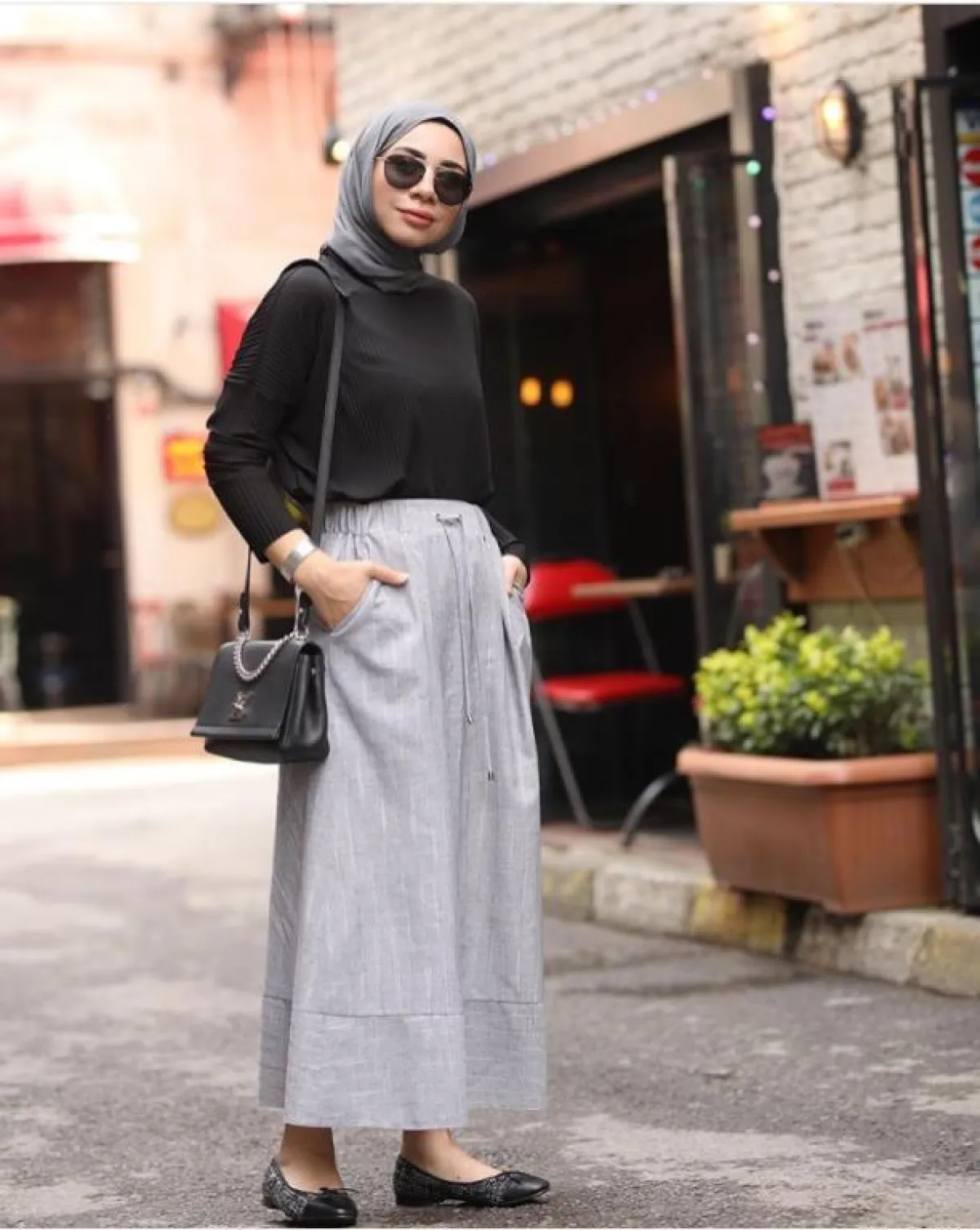 طقس الصيف الحار يلزمه اعتماد خامات خفيفة وناعمة على البشرة قدر الإمكان، كهذه التنورة من المدونة إيبرو سيفير بالتنورة الرمادية بخامات الكتان والقطن الناعمة، مع رباط مطاطي داخلي من عند الخصر، نسقي معها أي بلوزة بأكمام طويلة لديك، سواء ملونة، أو بإحدى الدرجات المحايدة.