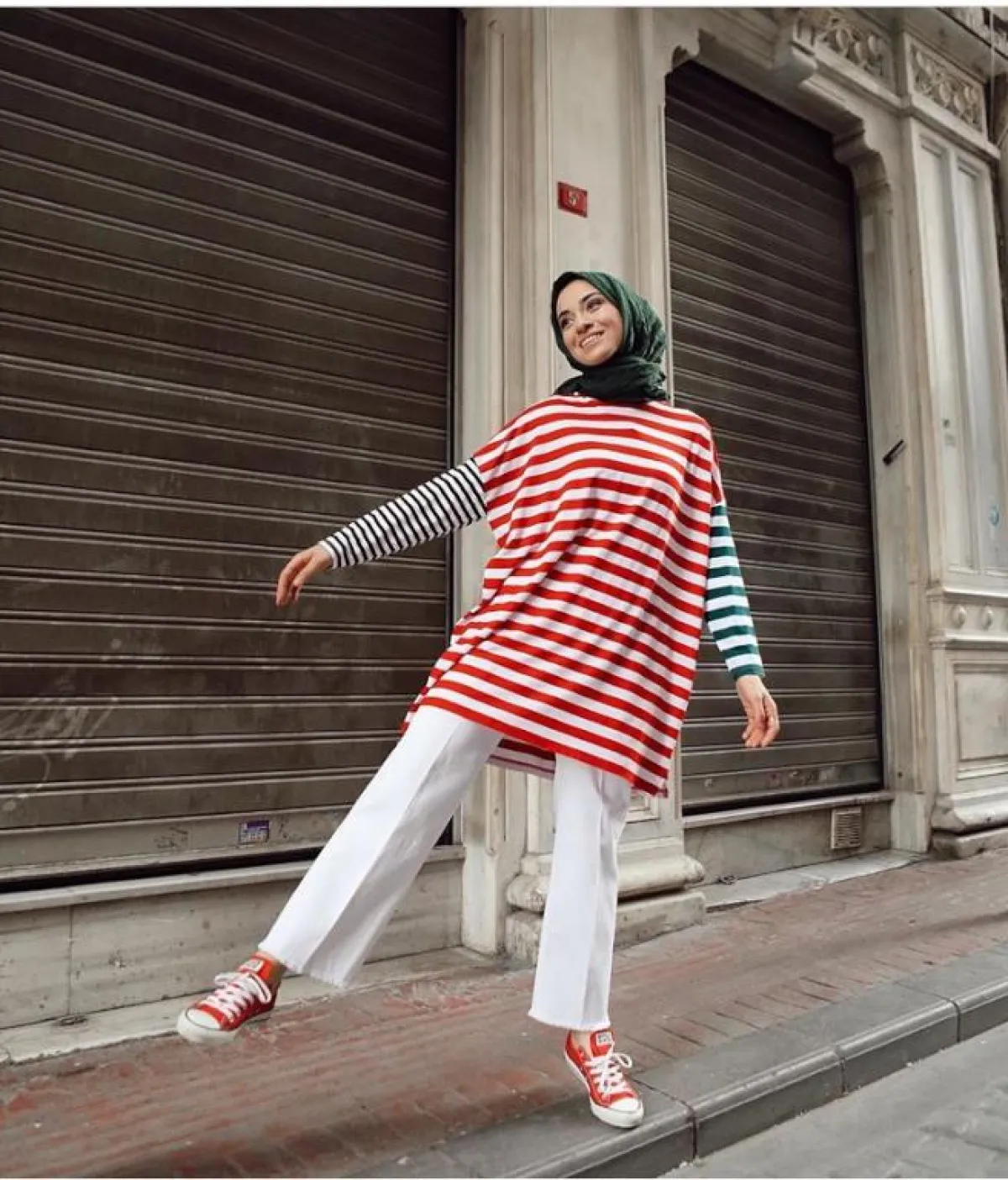 لاحظنا أن الفاشينيستا سينا سيفير تعتمد على البناطيل القماشية بشكل كبير، وبالرغم من أنها في غالب الأحيان قد تمنحك لوك كلاسيكيا، إلا أن التنسيق العصري قد يعكس اللوك ككل، مثل إطلالتها بالبنطلون الأبيض مع البلوزة الصيفية المخططة، واختيارها المميز للـ سنيكرز الأحمر الملون.