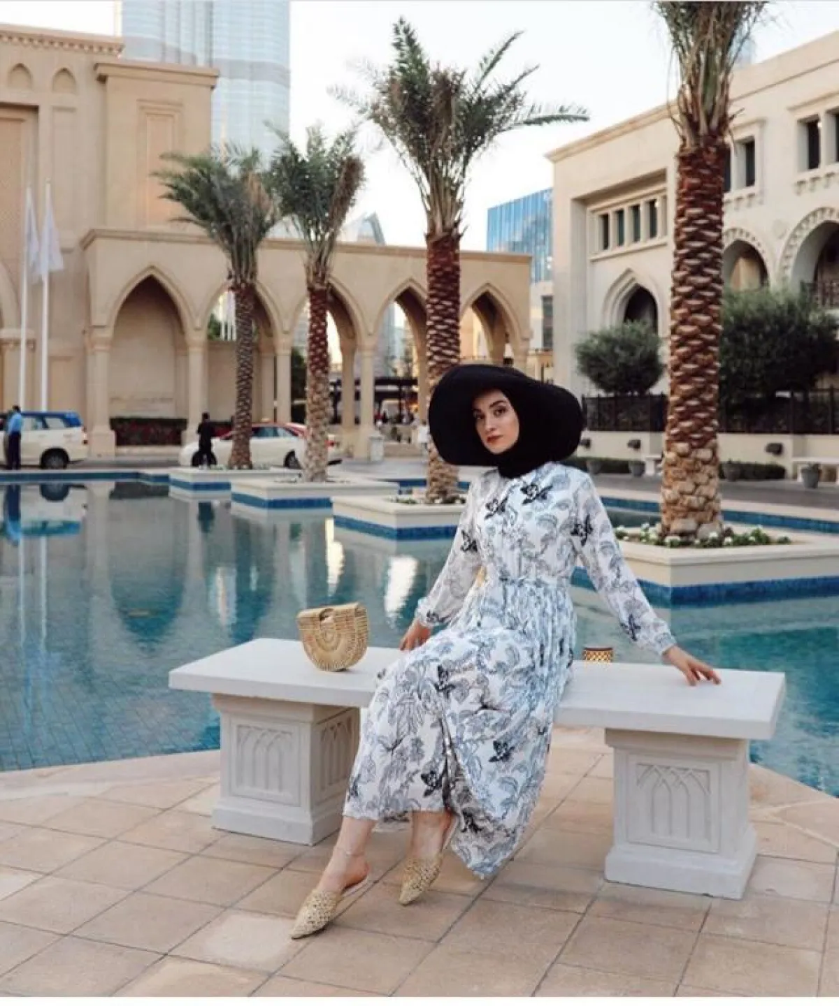 اعتماد الفساتين الصيفية بعطلاتك على الشاطيء، أصبح الأسلوب المميز الذي تعتمده البلوجرز بشكل عام، ويمكنك اعتماده أنت أيضا على طريقة المدونة سينا سيفير، مع أحذية الميول، وارتداء لفة الحجاب مع القبعة الصيفية، ولا تنسي شنطة الباسكت الخوص.