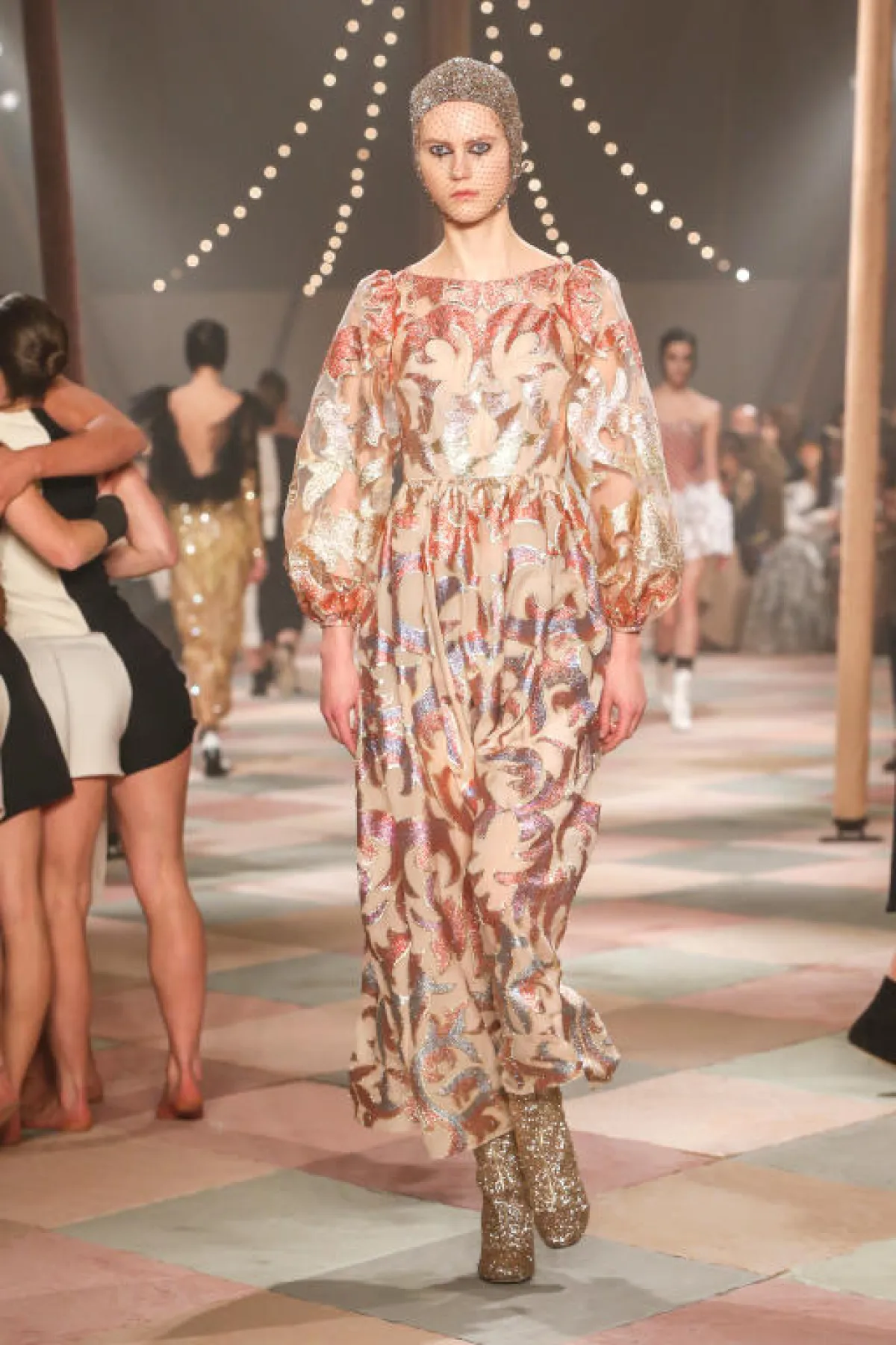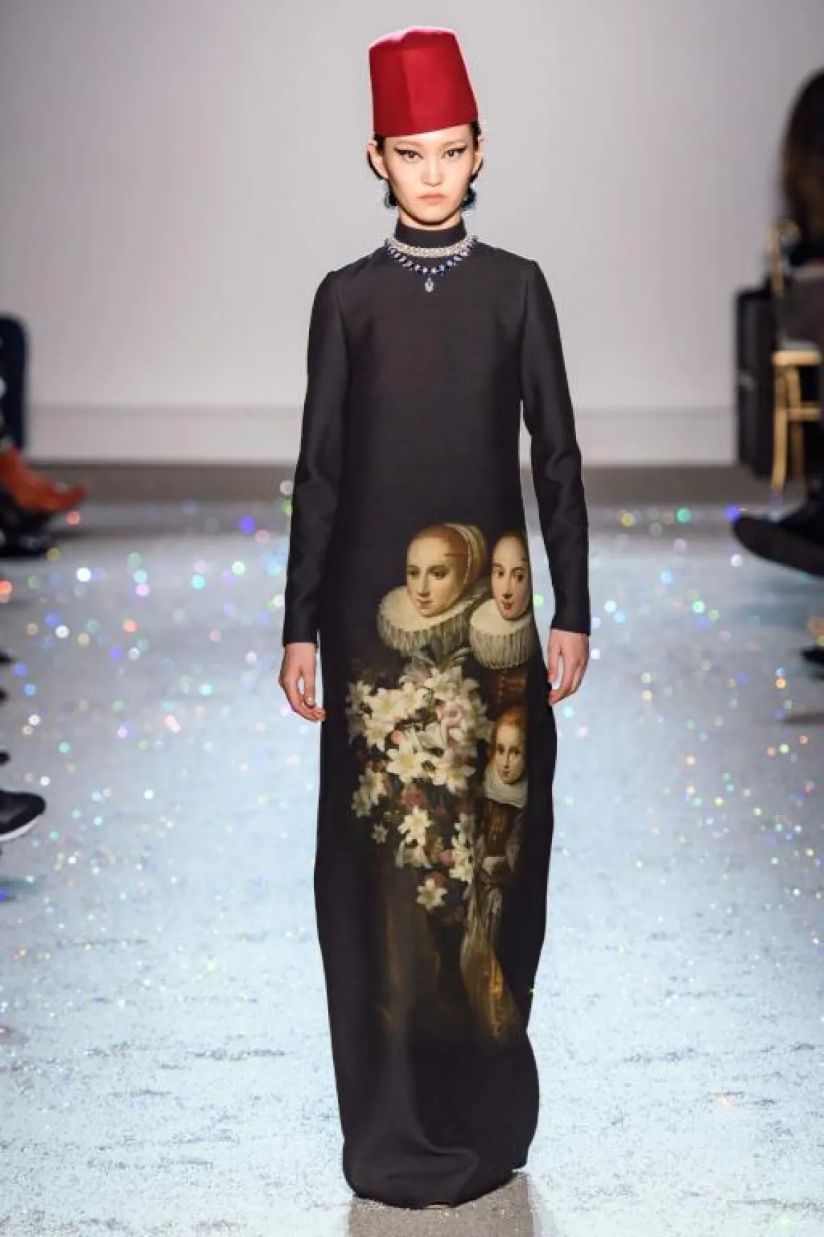 - كذلك الحال مع جامباتيستا فالّي Giambattista Valli، الذي لا يتوانى في أيّ مجموعة عن تقديم قصّات فضفاضة شرقيّة الهوى، وذات أسلوب أنثوي ملفت ومميّز، ولعلّ أبرزها جاء في مجموعة ربيع وصيف 2017 للأزياء الراقية.