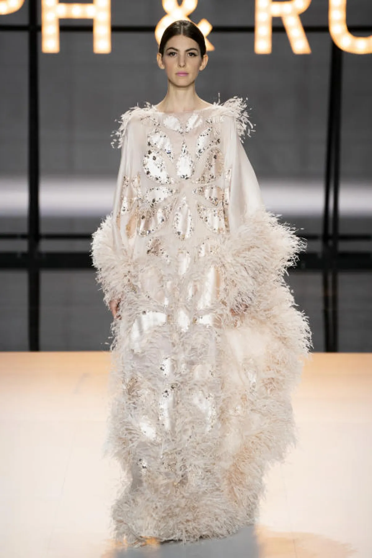 - أمّا مصمّما علامة رالف أند روسو Ralph & Russo، فلهما بصمتهما المميّزة في هذا المجال وفي كلّ مجموعة كوتور من توقيعهما، حيث نراهما يُدخلان إليها تصميماً أو أكثر مستنبطاً من عالم العباءة، ولكن مزدانة بالتفاصيل زائدة، كالريش أو الزخرفات وغيرها…