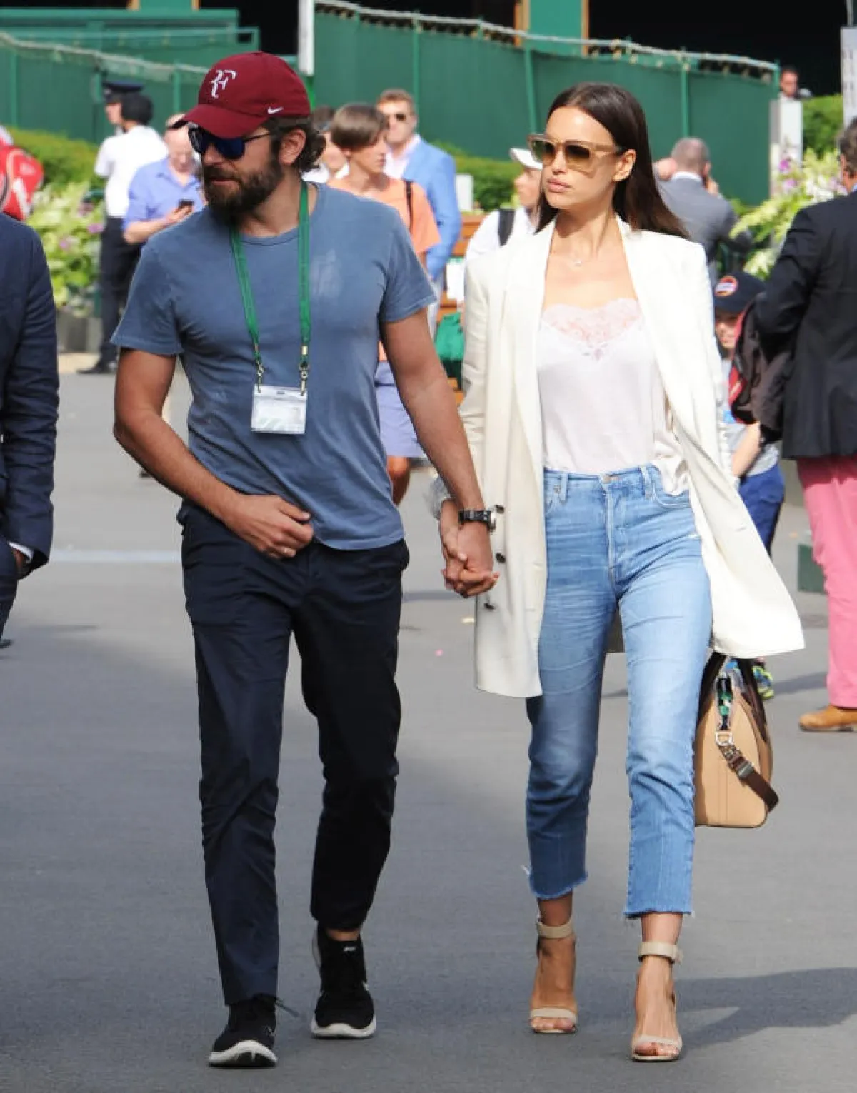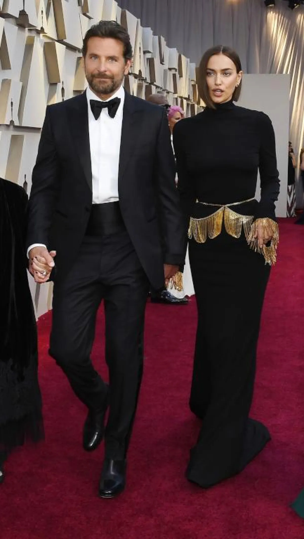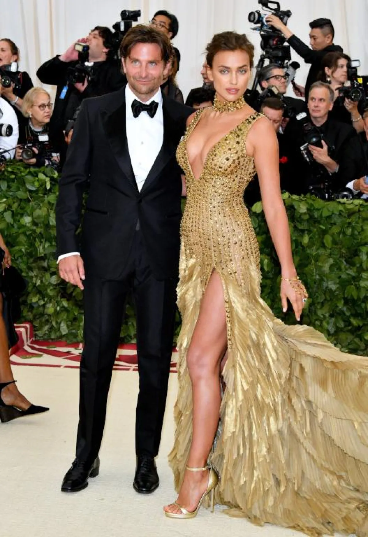 كثيرًا ما كنا نشاهد الثنائي في اطلالات رائعة على السجادة الحمراء، مثل هذه الاطلالة المميزة التي اختارت فيها إيرينا Irina فستانًا باللون الذهبي البراق من دار “فيرساتشي” Versace، ونسقت معه صندلًا بكعب عالٍ باللون الذهبي أيضًا، وتألق برادلي Bradley ببدلة رسمية أنيقة باللون الأبيض.