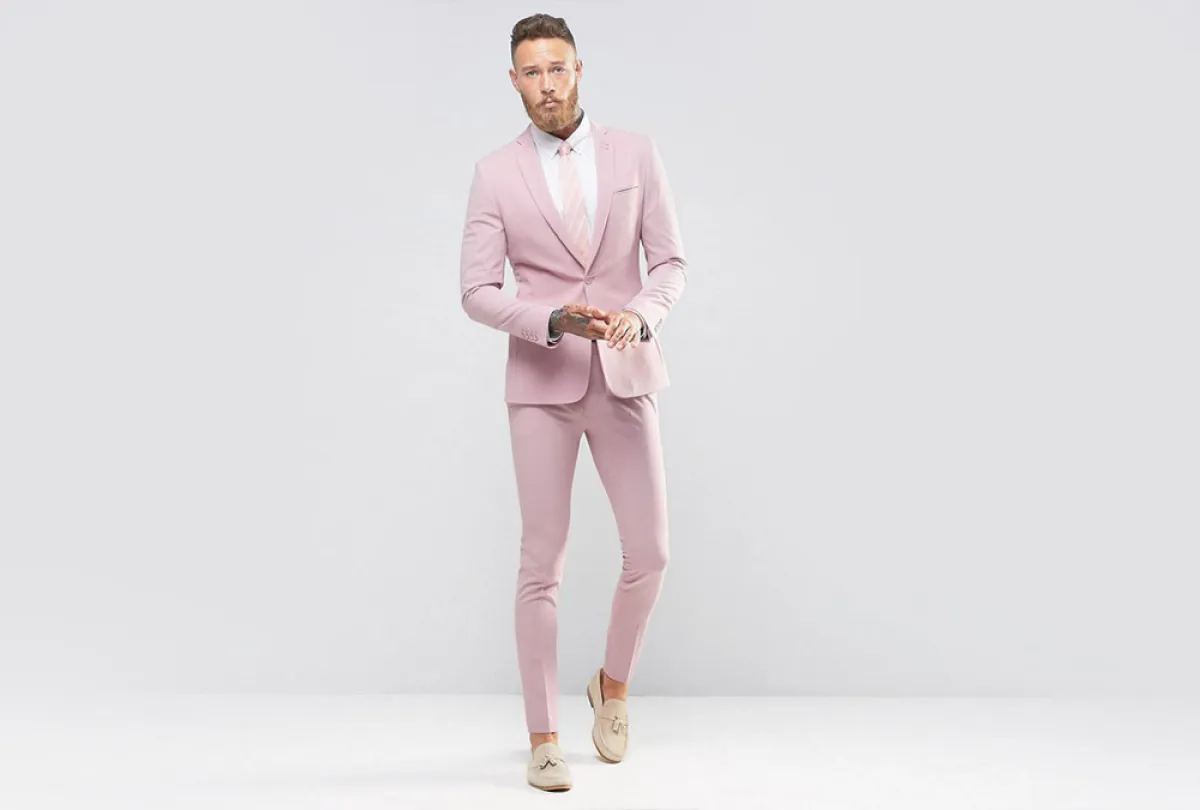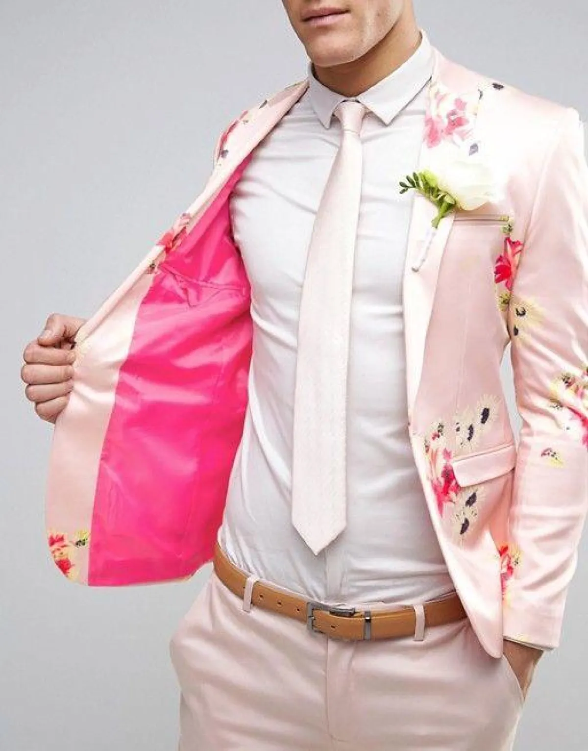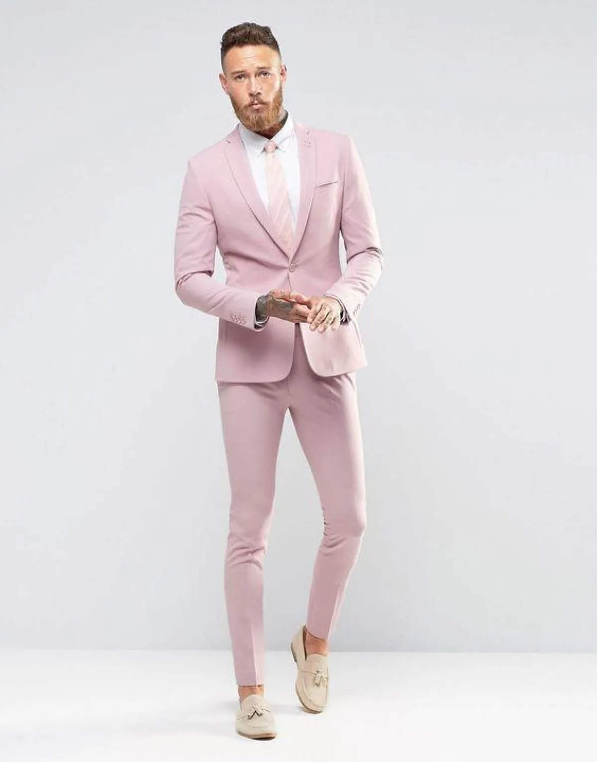 سادت الأزياء من اللون الزهري بكثرة لهذا الصيف، فلماذا لا تعتمده في صيحة البدل ؟ نسّق بدلة من اللون الزهري مع قميص أبيض، و ربطة عنق من اللون نفسه مخططة باللون الأبيض لاطلالة مترفة .