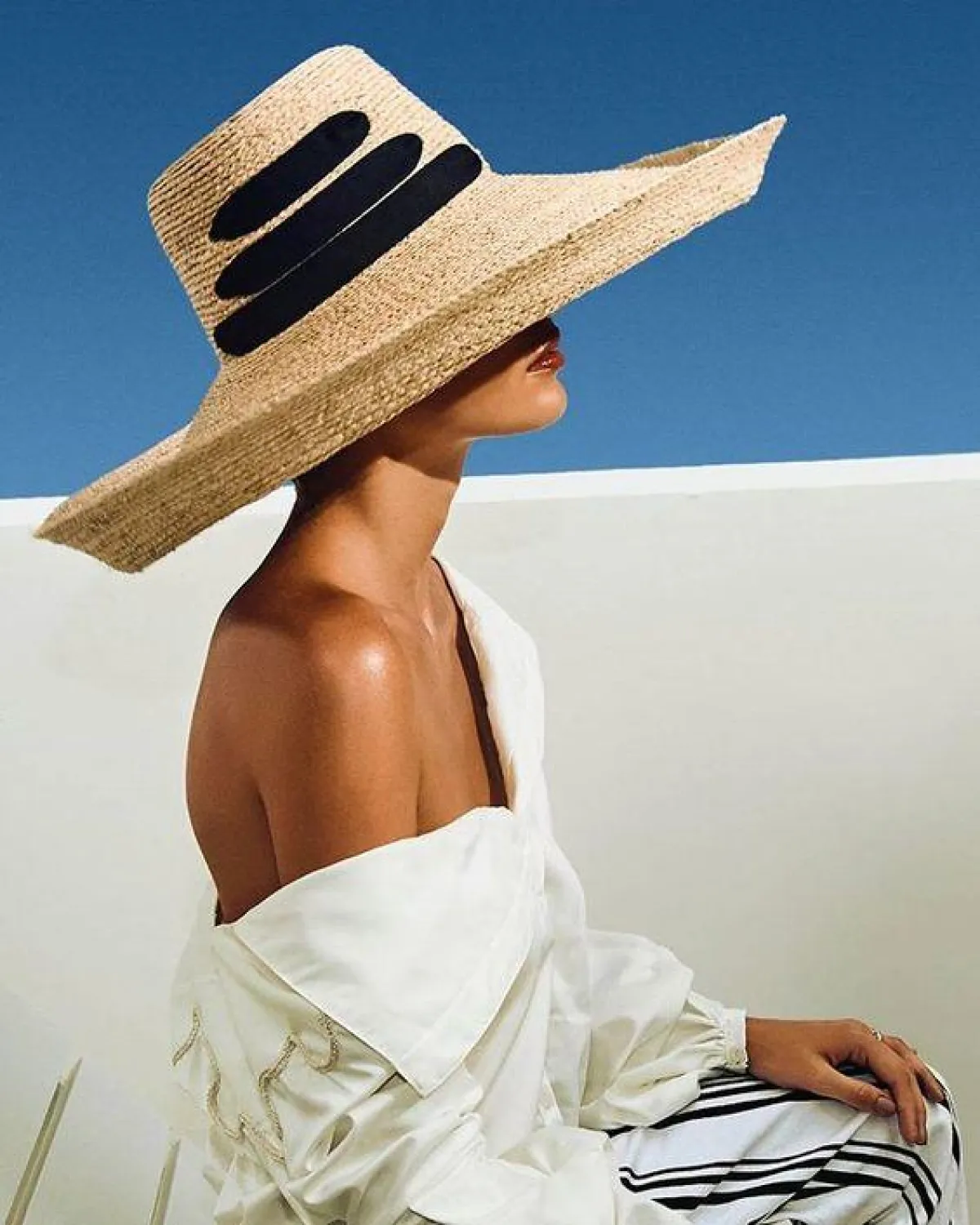 تُعتبر القبعة الكبيرة من القبعات الأكثر رواجاً على الشاطئ، لذلك يمكنك تنسيقها من صيحة القش مع قميص أبيض فضفاض، و بنطلون واسع .