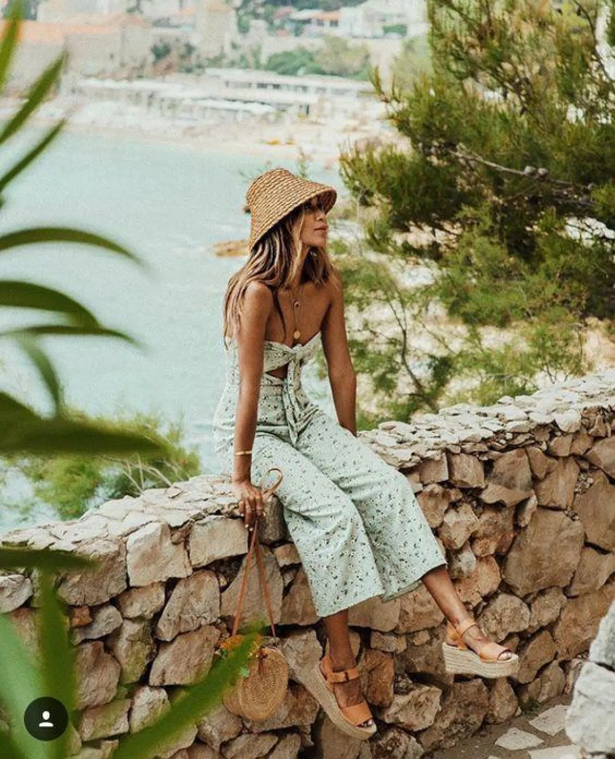 نسقّي اطلالتكِ النهارية مع قبعة على شكل دائرة من صيحة القش، مع فستان لينين، وحقيبة الدلو .