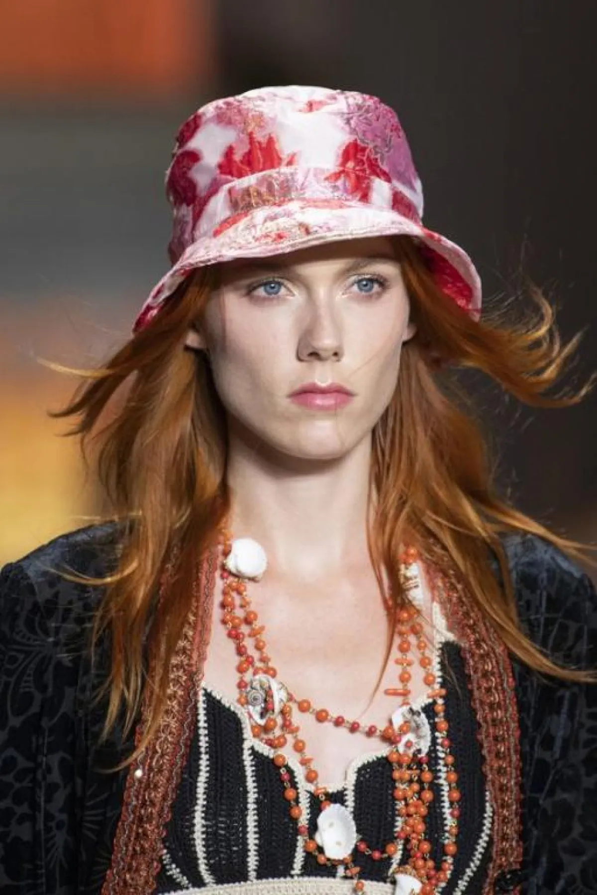 نسّقي صيحة قبعة البوكت بنقشات، والتي راجت بأهم الدور العالمية للأزياء، مثل أنا سو مع فستان زهري و صندل .
