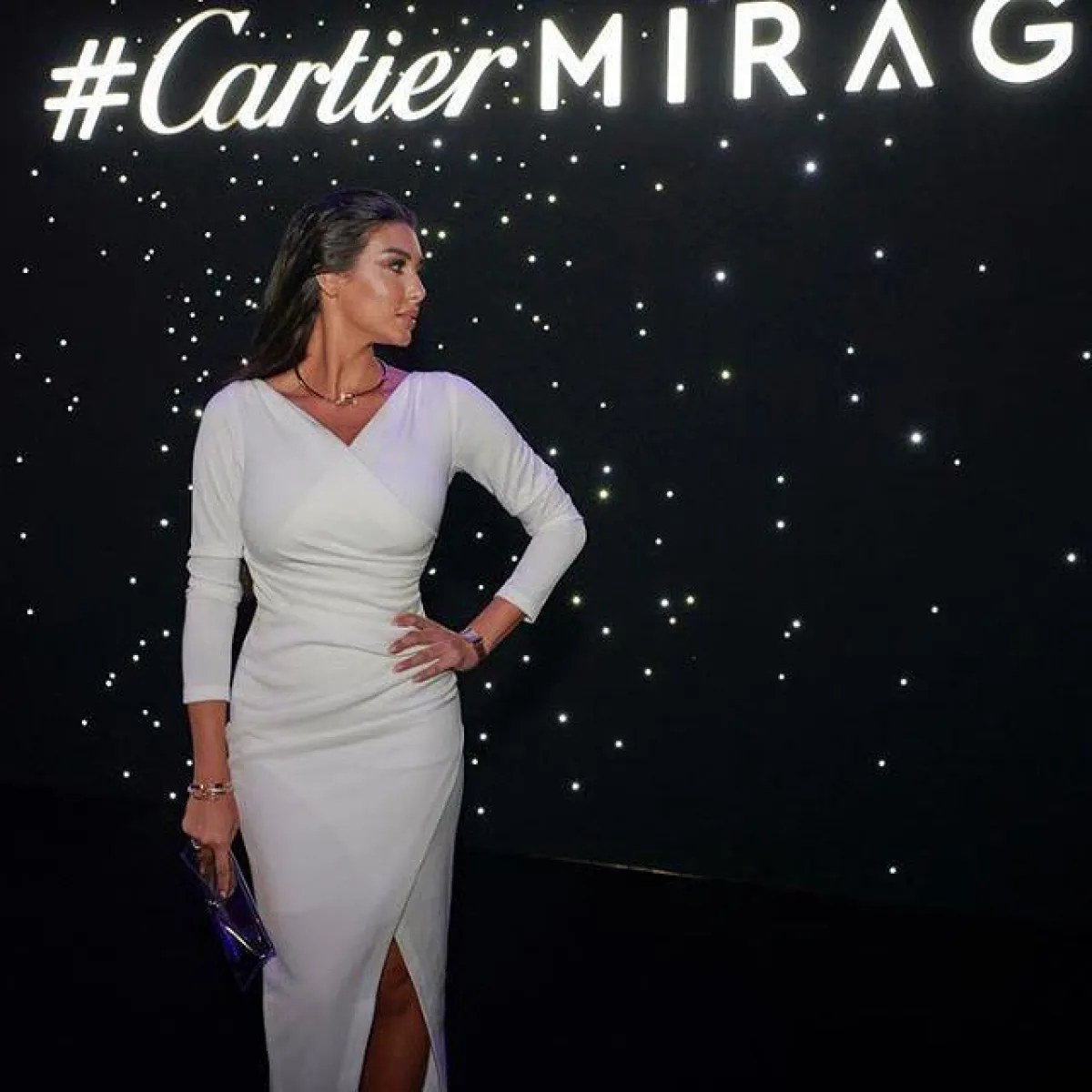 ومع الأزياء باللون الأبيض، تسعى ياسمين صبري غالباً إلى تنسيق مجوهرات ذهبية اللون لكسر البياض الناصع وإضاء لمسة مشرقة على الإطلالة. وقد رصدناها معتمدةً قلادة Choker تلف عنقها مع فستان أبيض ضيق مفعم بالأنوثة؛ دون أي أقراط بهدف تسليط الضوء عليها.