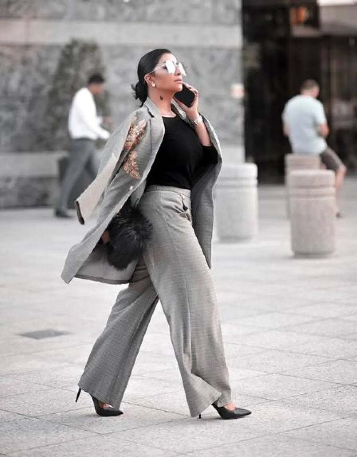 من المعروف عن بثينة الرئيسي أنها تعشق التنسيقات الشبابية ذات الطابع العصري، مثل هذا اللوك الذي اختارت فيه بنطلونًا ضيقًا من الجلد باللون الأسود، نسقت معه قميصًا بتصميم مميز، من جهة منقط ومن جهة مقلم، وأكملت اللوك بحقيبة على الخصر، وحذاء بكعب عالٍ باللون البيج.