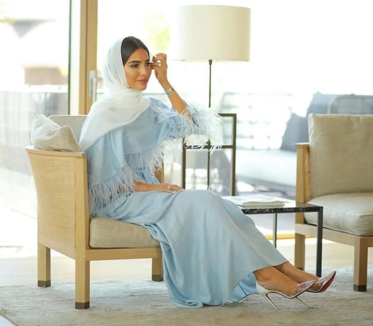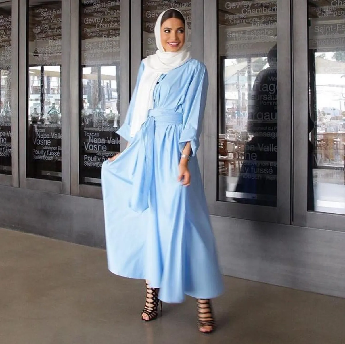 اعتمدت فاطمة حسام على الفساتين الصيفية بدرجات البيبي بلو السماوية، أساسية بخزانتكِ هذا الصيف، كما أنها مناسبة لكل أجسام الصبايا، بخاصة مع حزام الخصر الأنيق، نسقيها مع السليبر المفتوح، أو أحذية الميول العصرية.