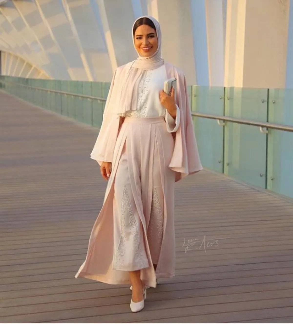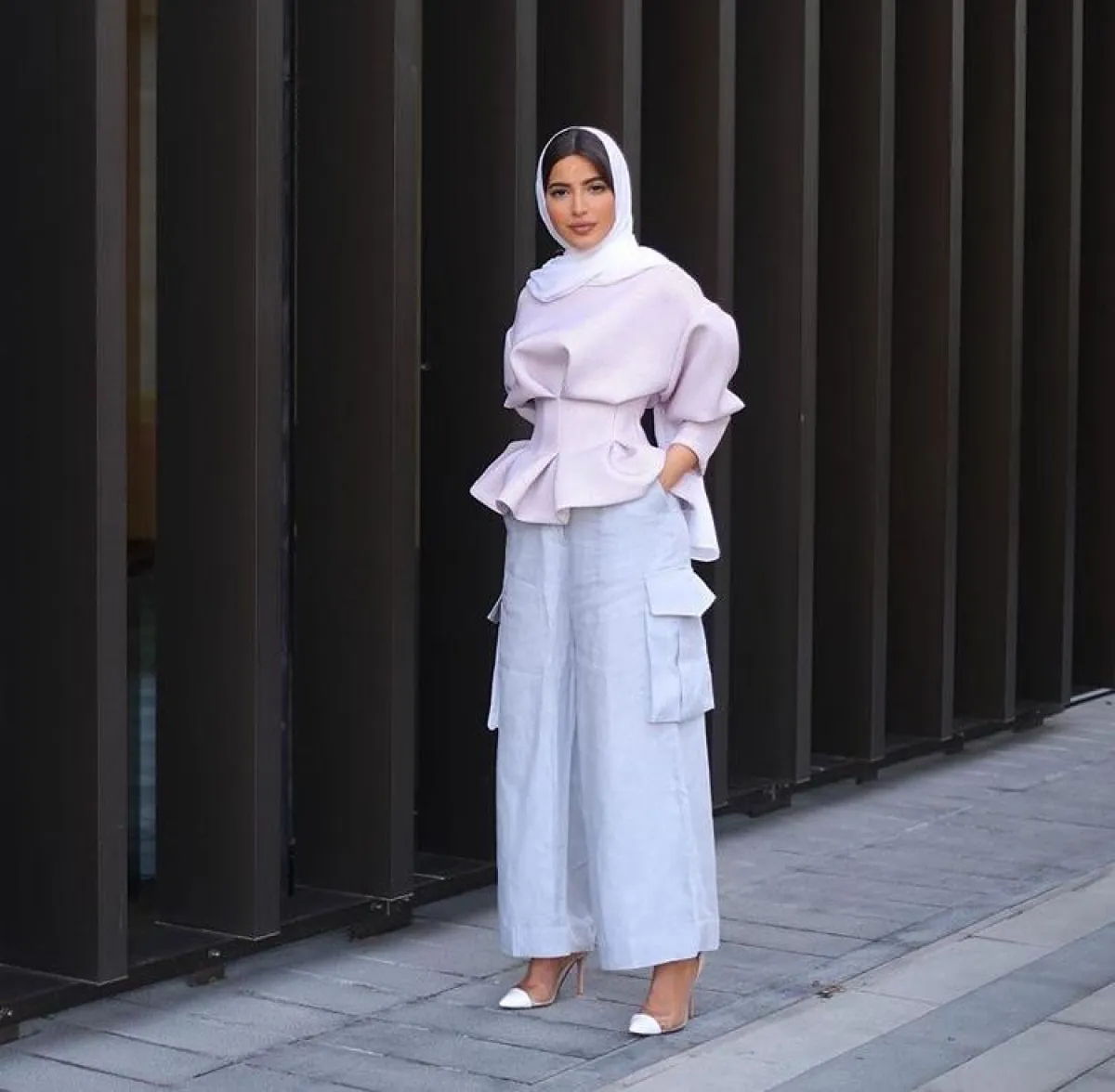 البناطيل البيضاء الواسعة مع اللوك الحيادي